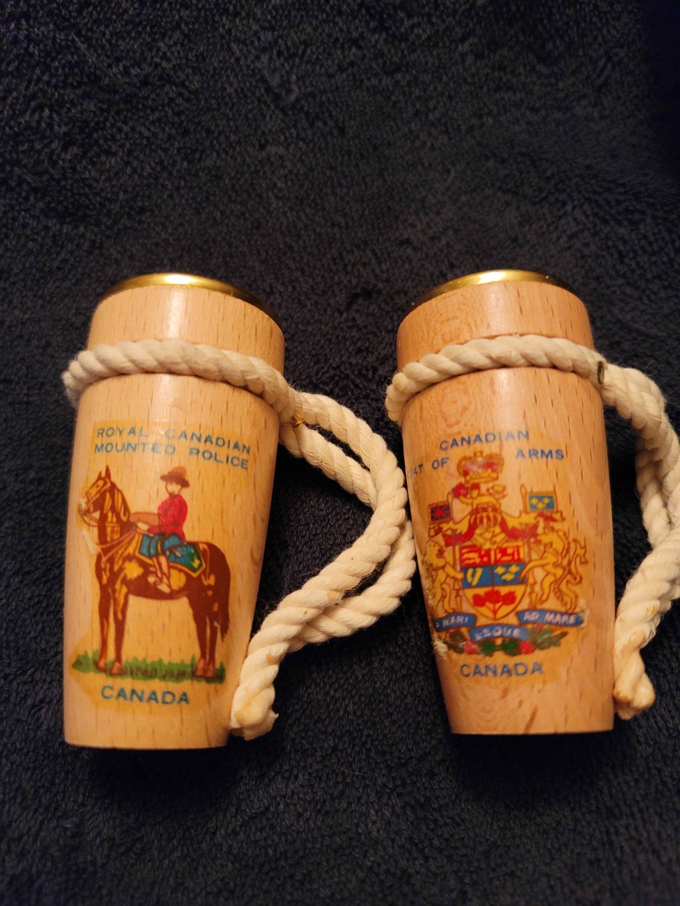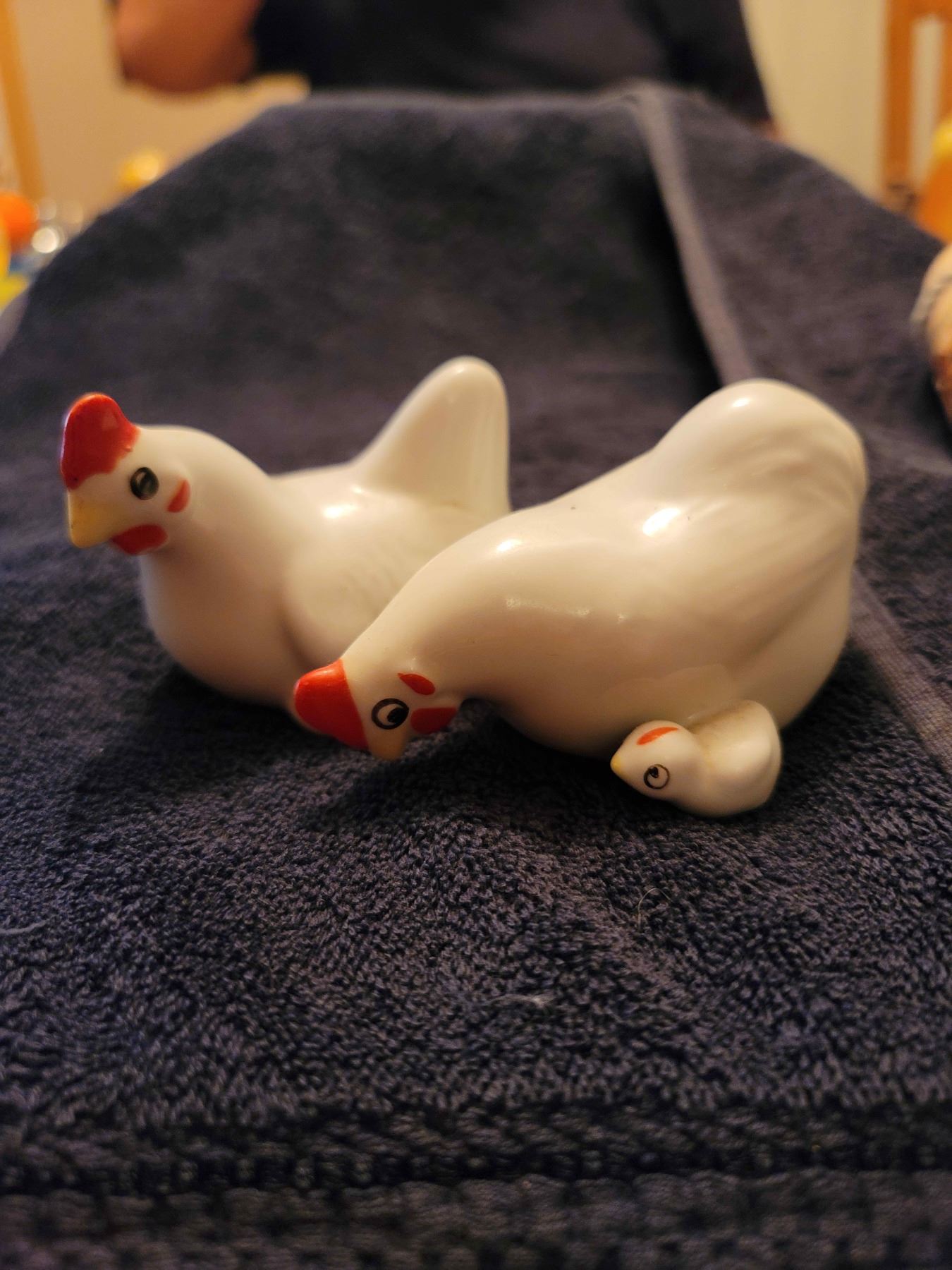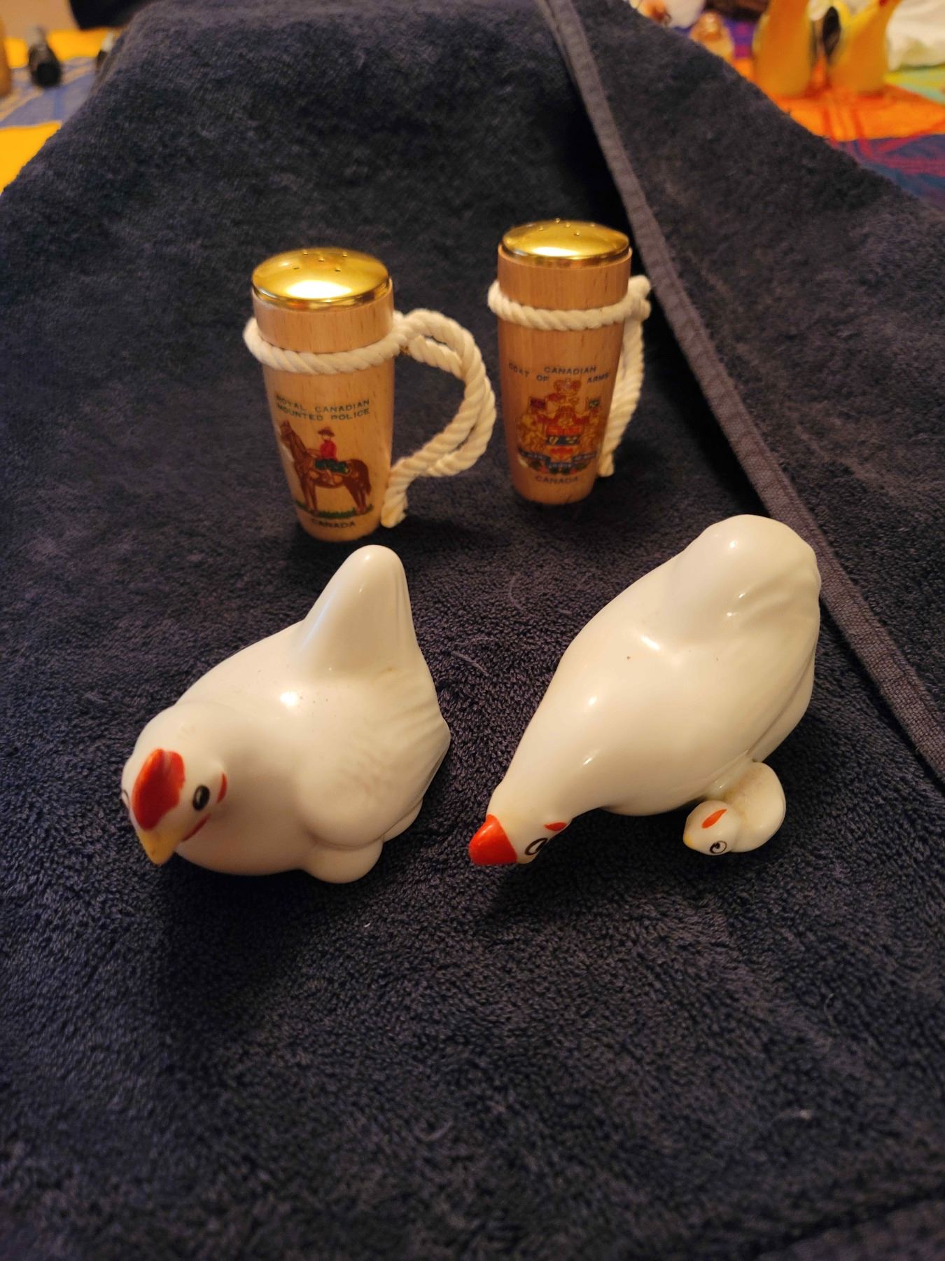 2 sets vintage salt and pepper shakers chickens and RCMP bongos