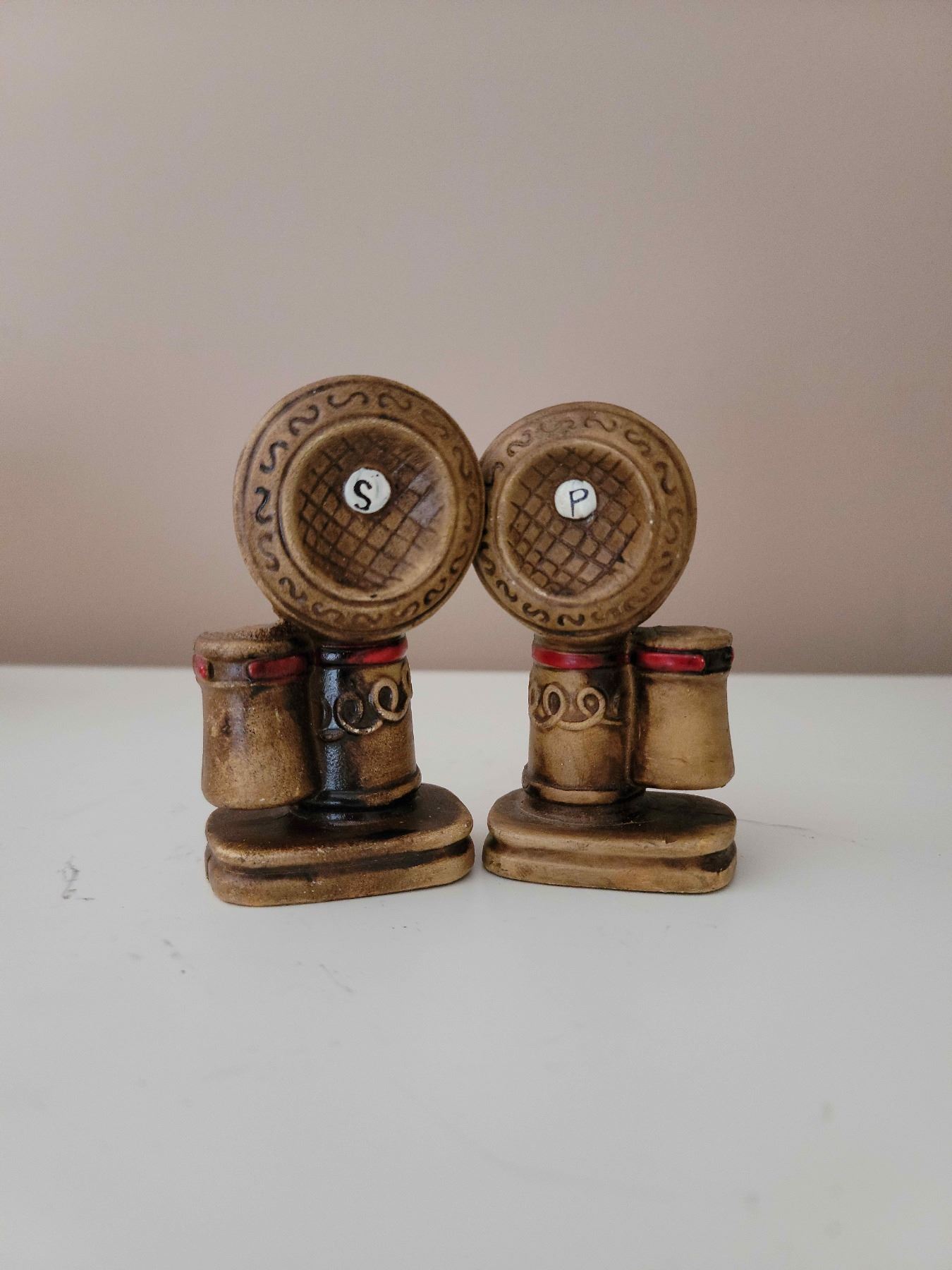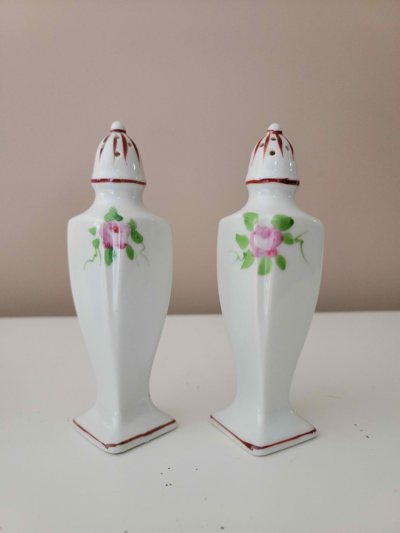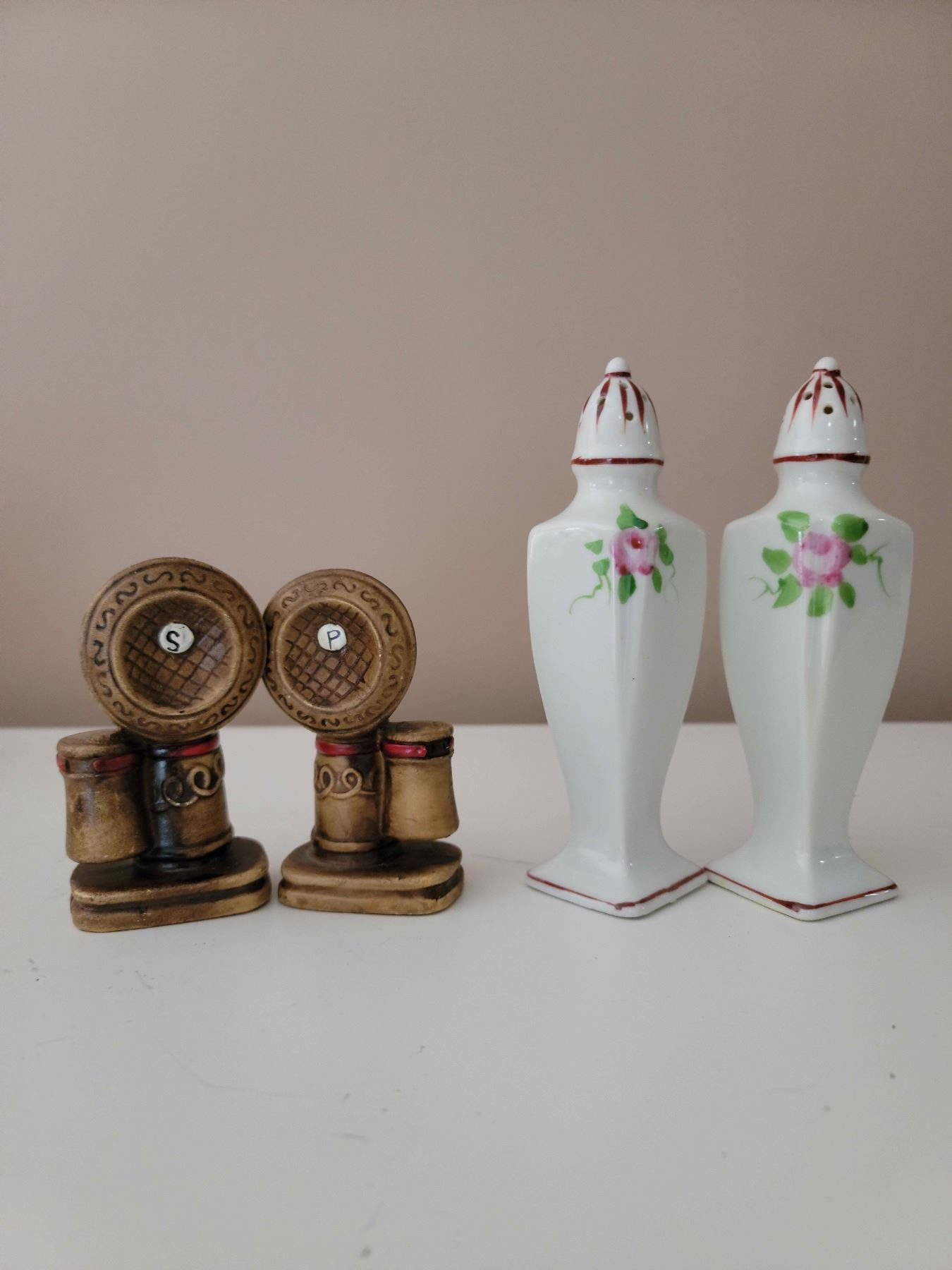 2 sets vintage salt and pepper shakers telephone and tall ceramic floral print