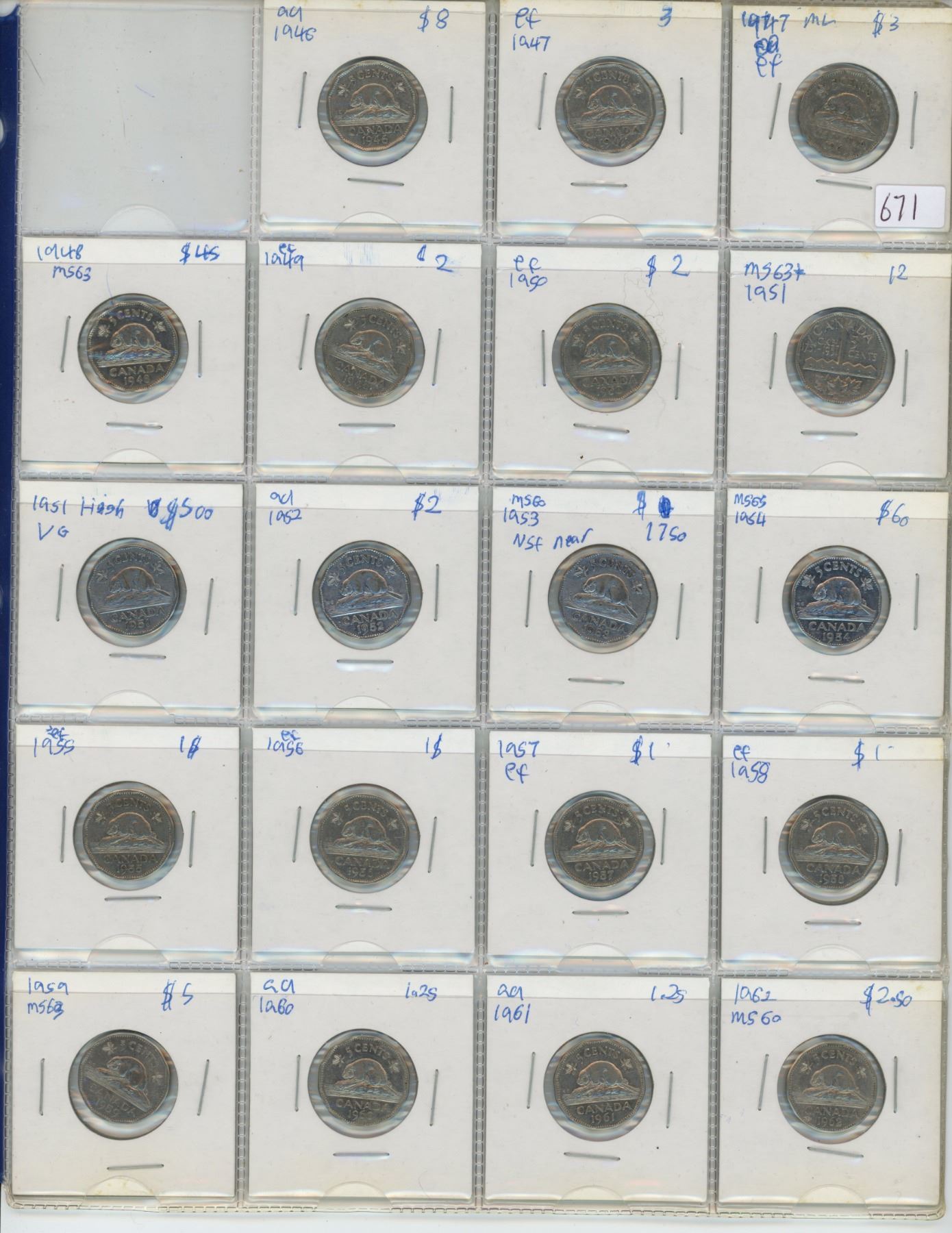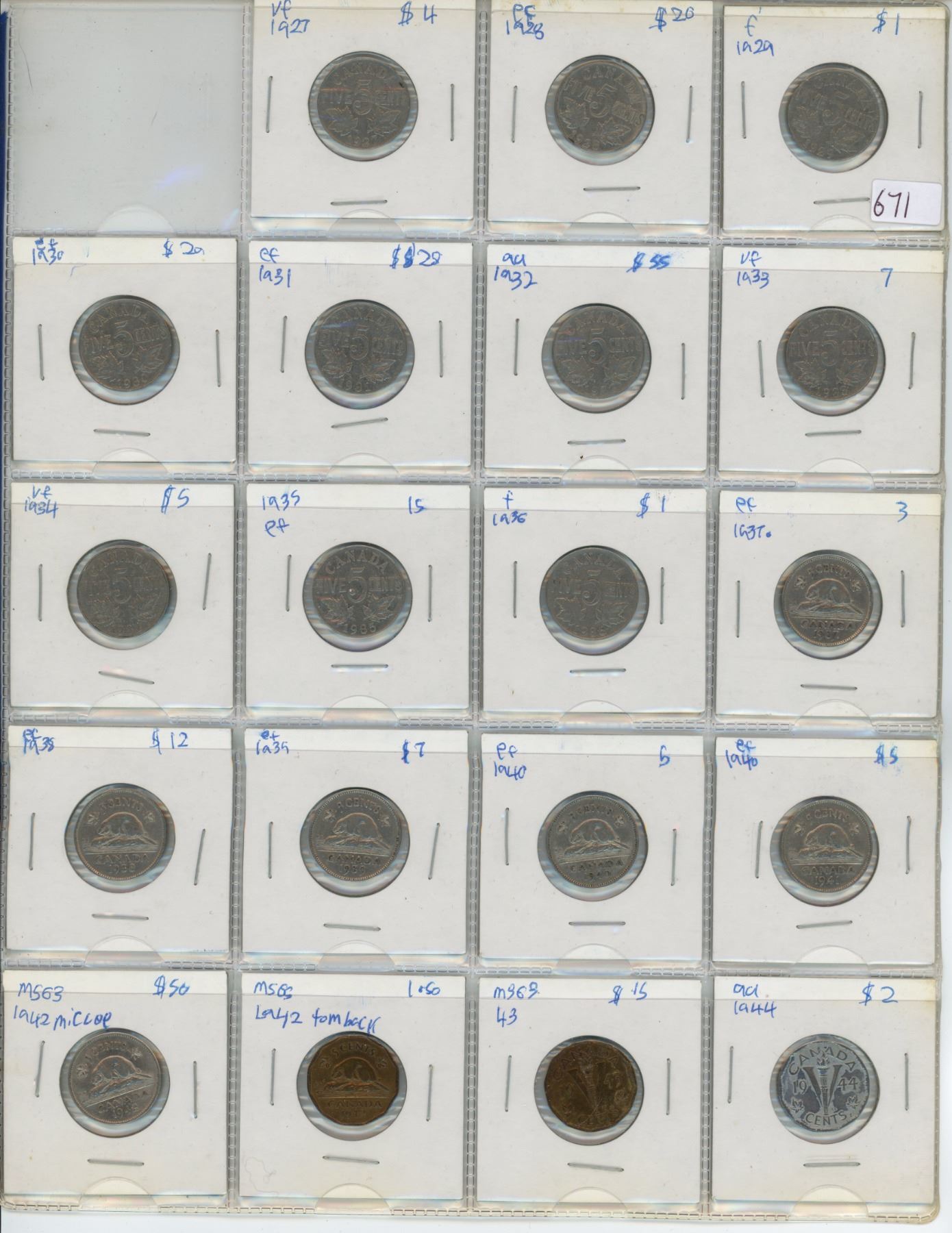 2 sleeves of Canadian 5 cent coins - 1927-1944 & 1946-1962
