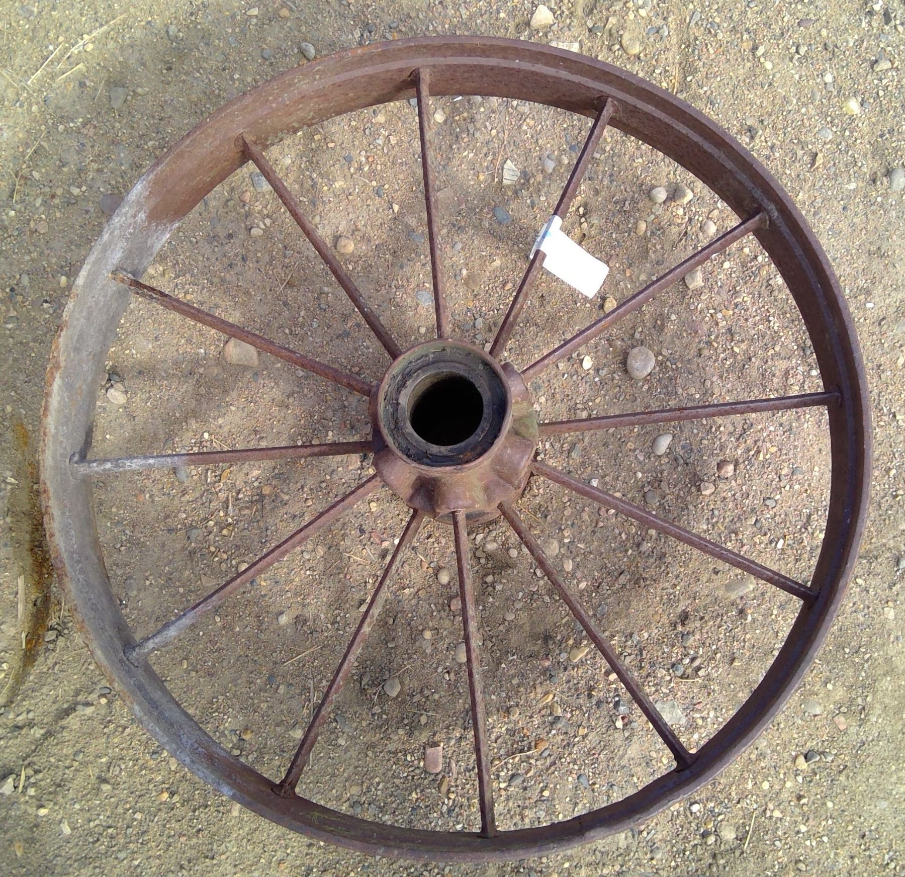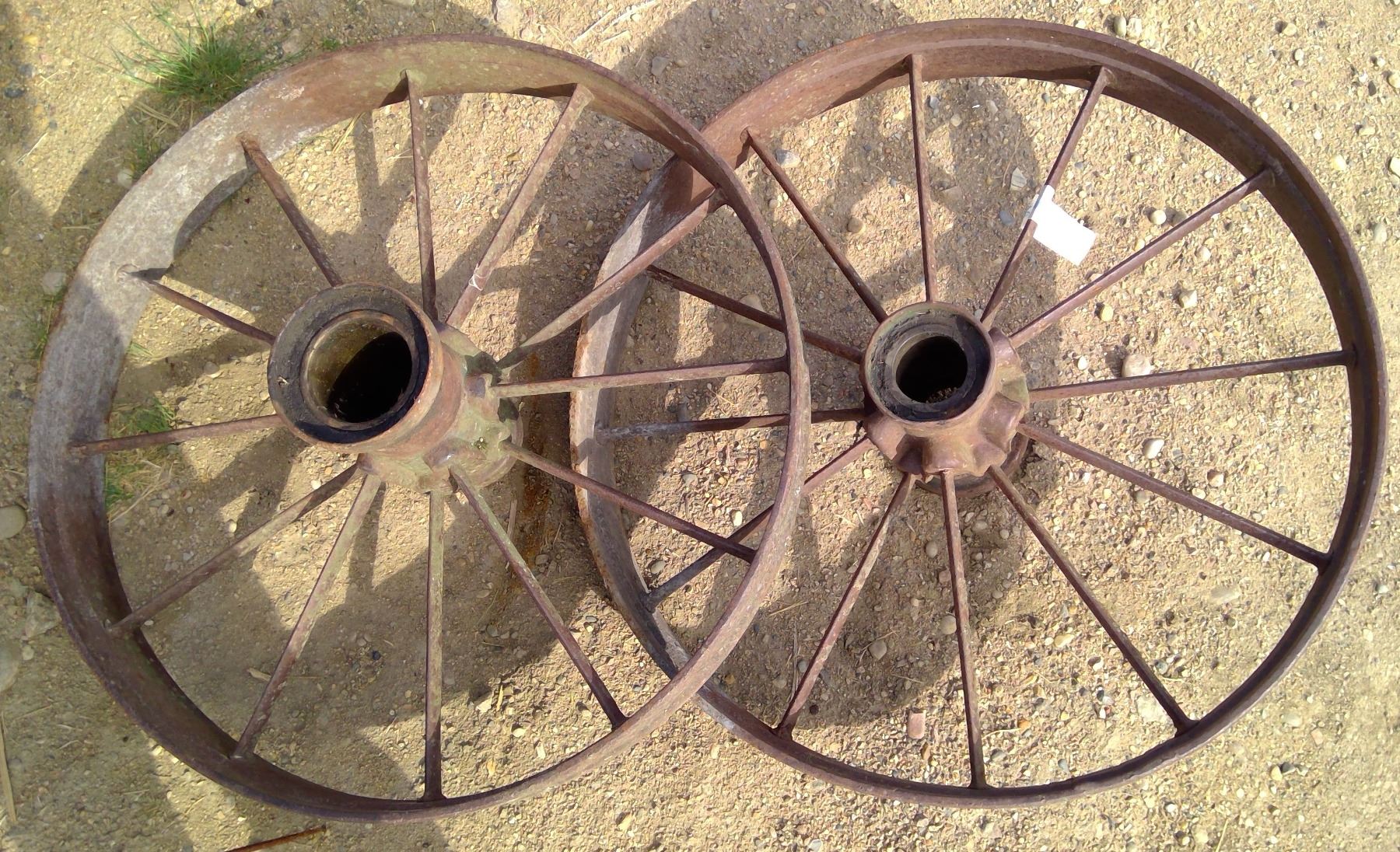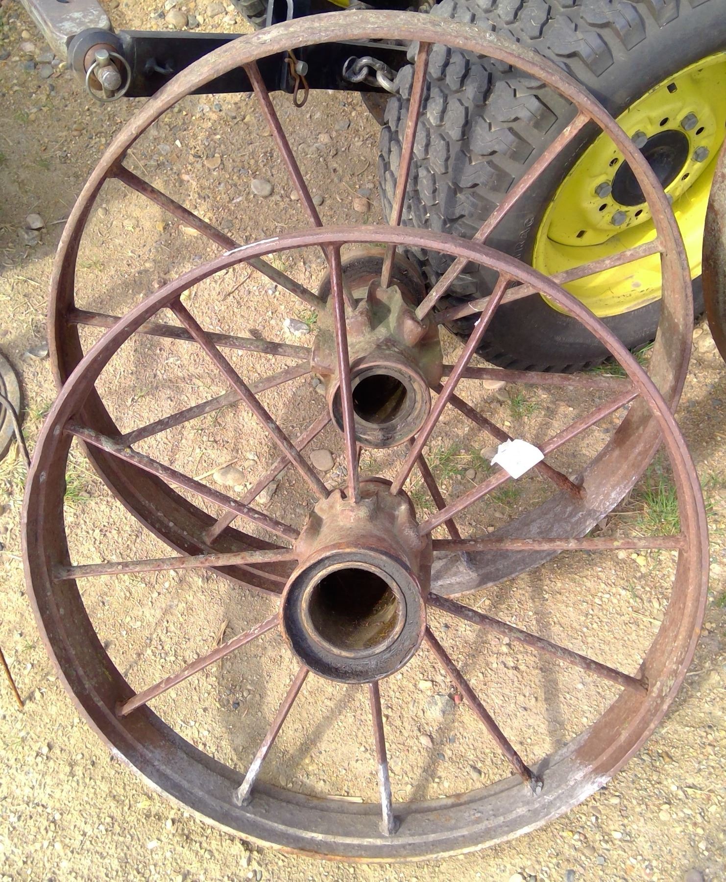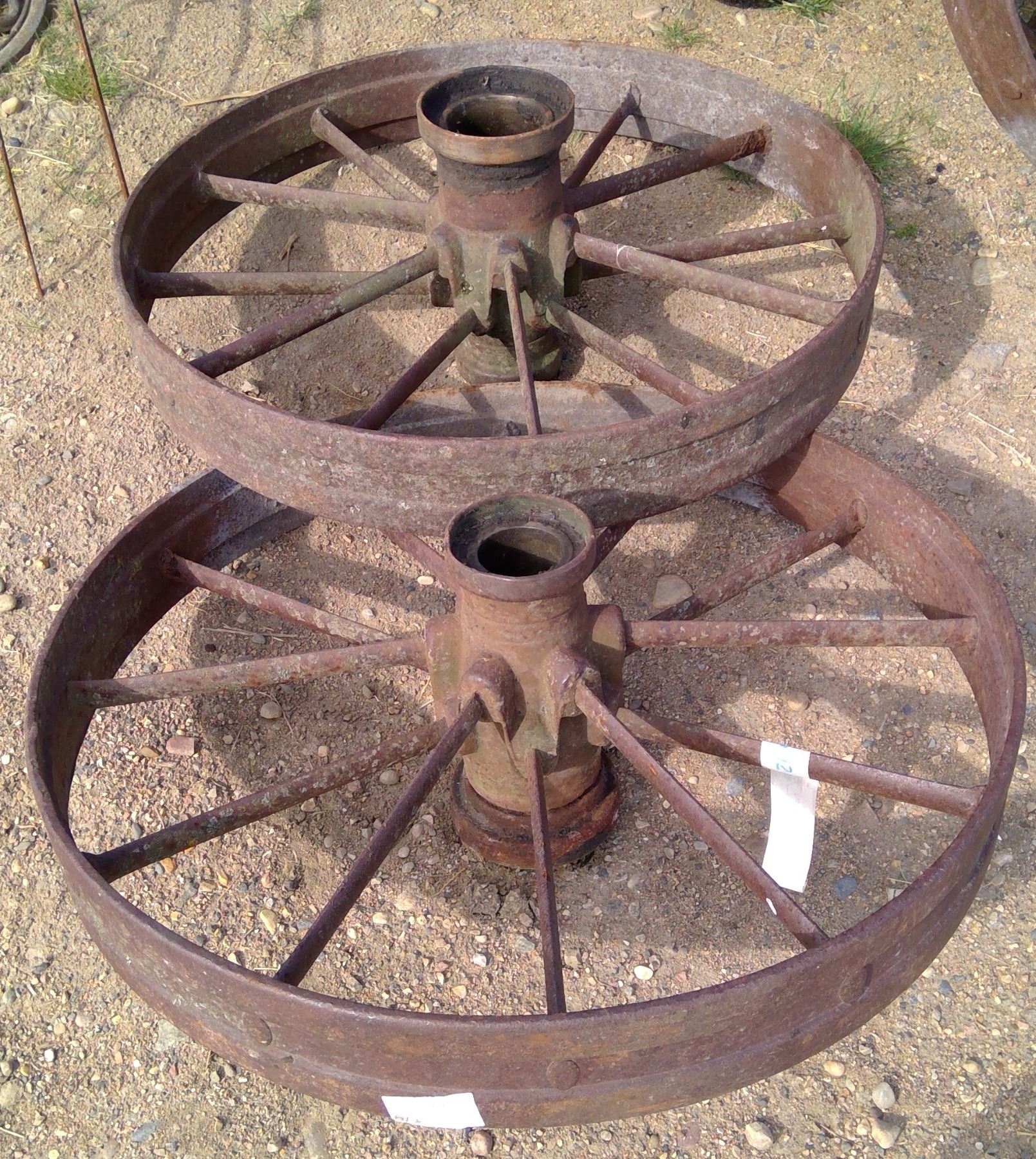 2 smaller steel wheels 28" high