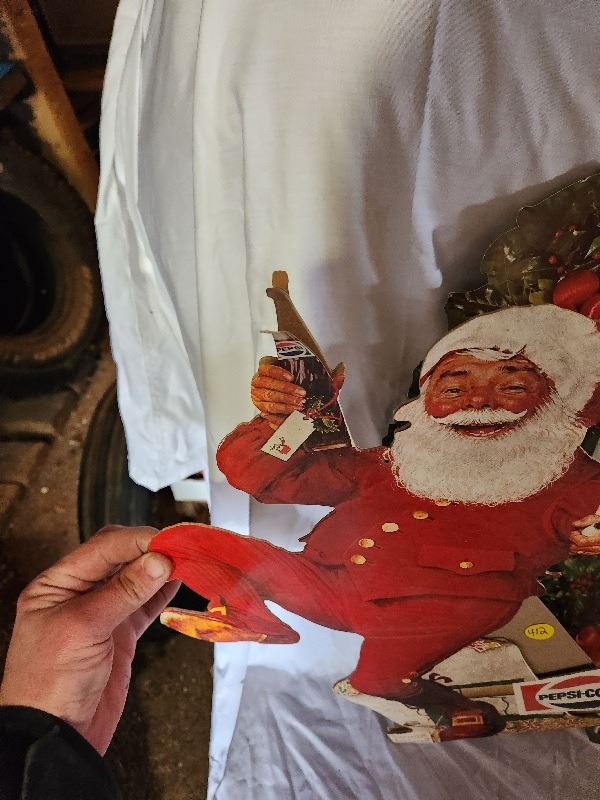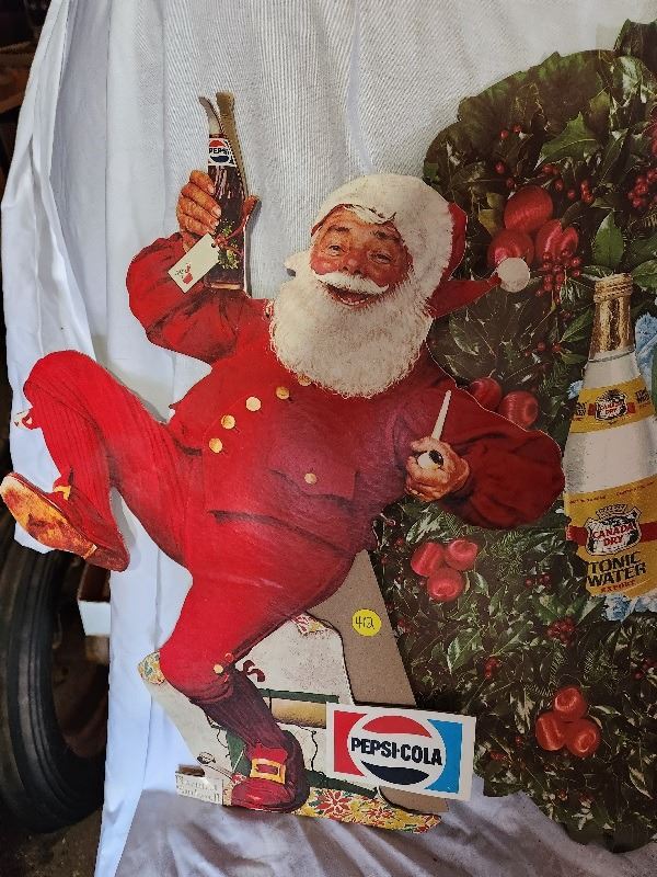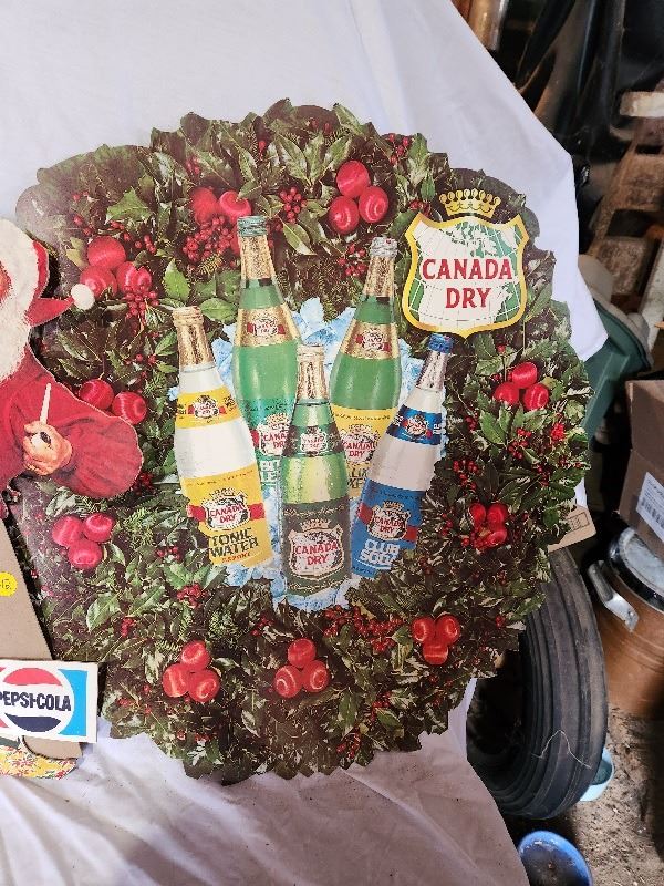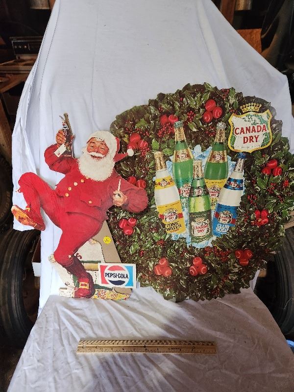2 soda related Christmas cardboard advertising signs (Pepsi Santa and Canada dry wreath double sided)