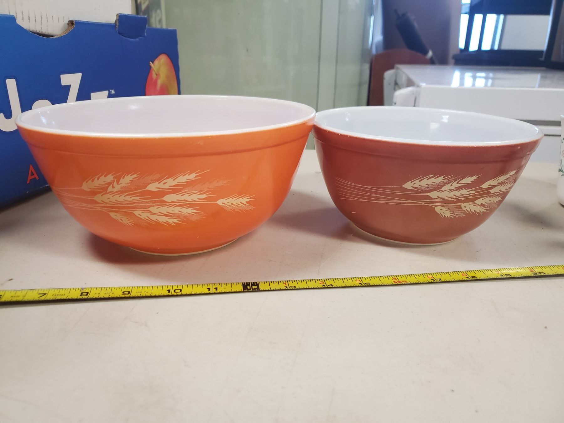 2 vintage PYREX bowls, wheat pattern - oven & microwave safe