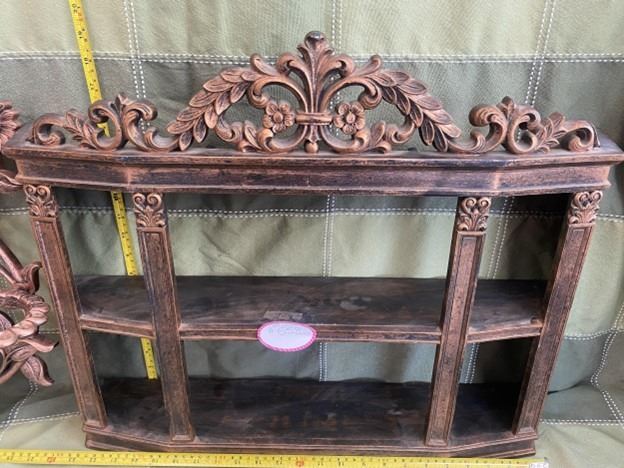 2 vintage coppercraft pieces. One shelf and one floral wall hanging. No chips or cracks.