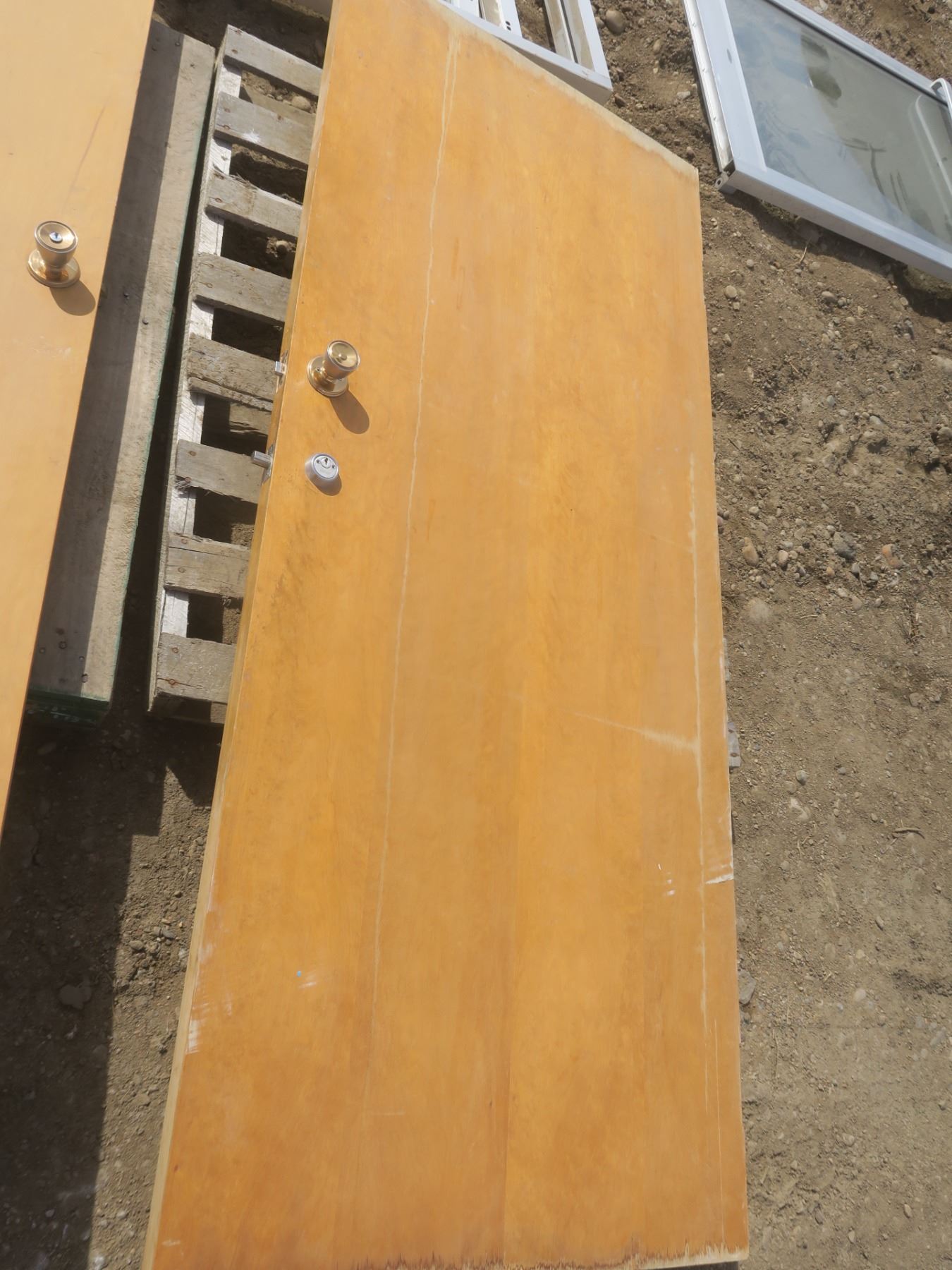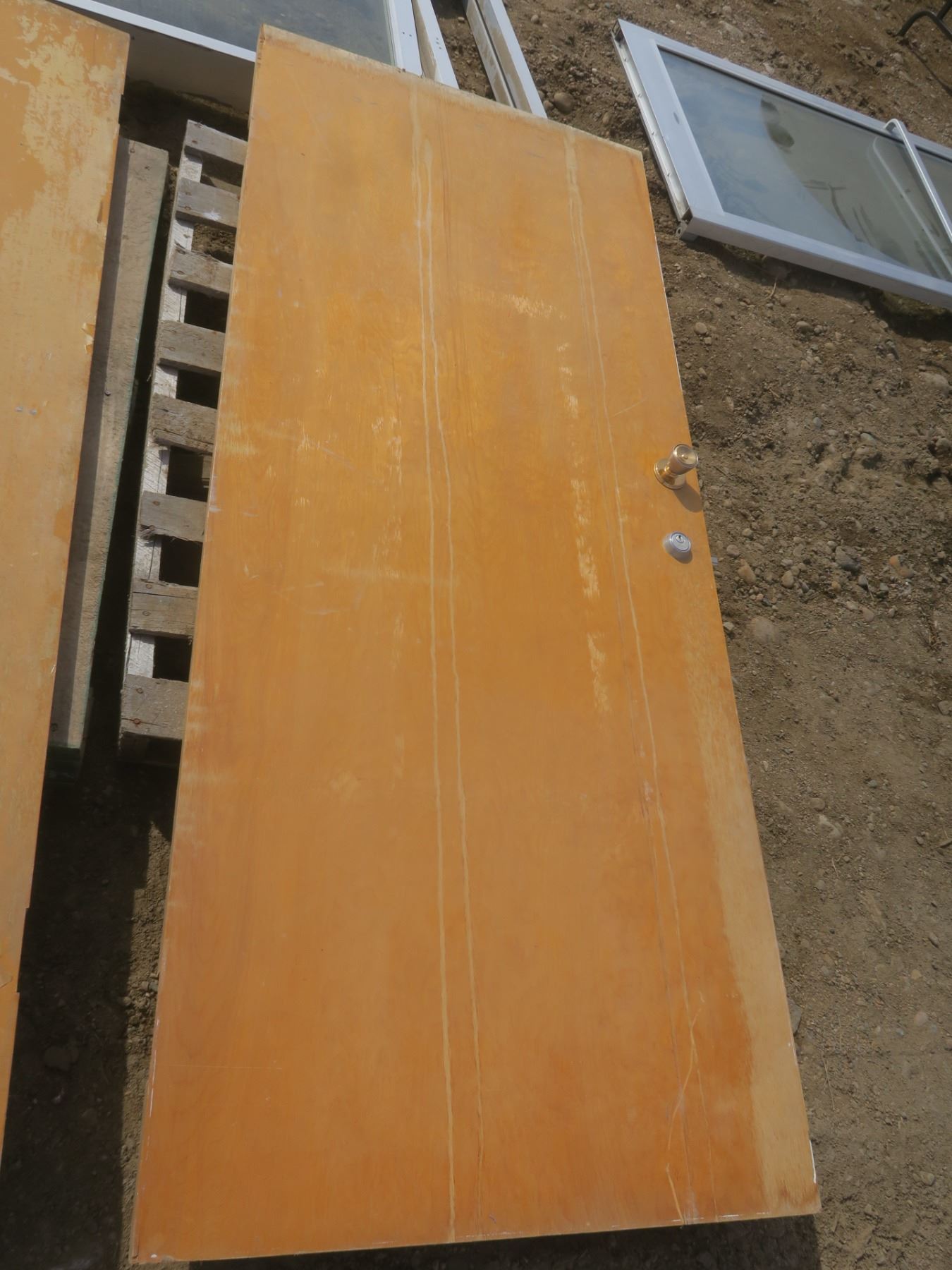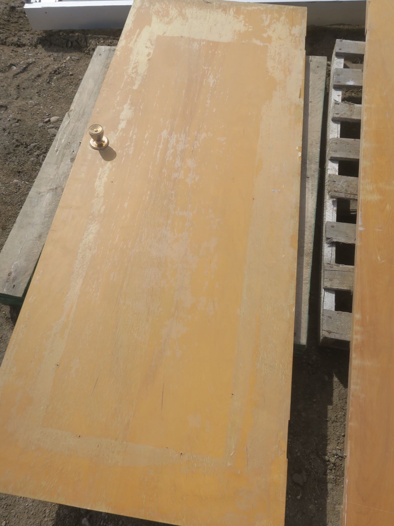 2 wooden doors - with lock:81.75"x33.75"x1.75", and 77.25"x30"x1.5"