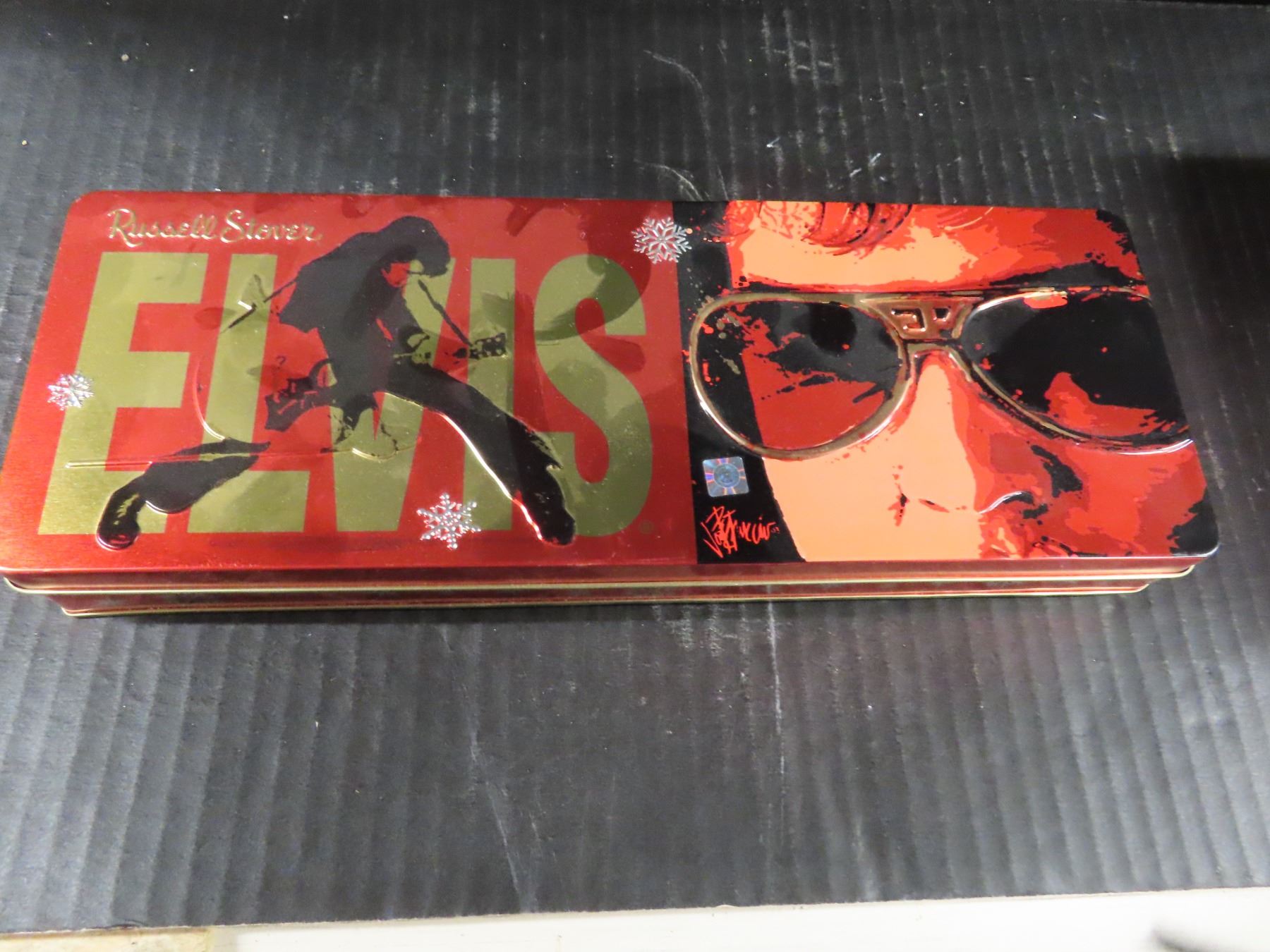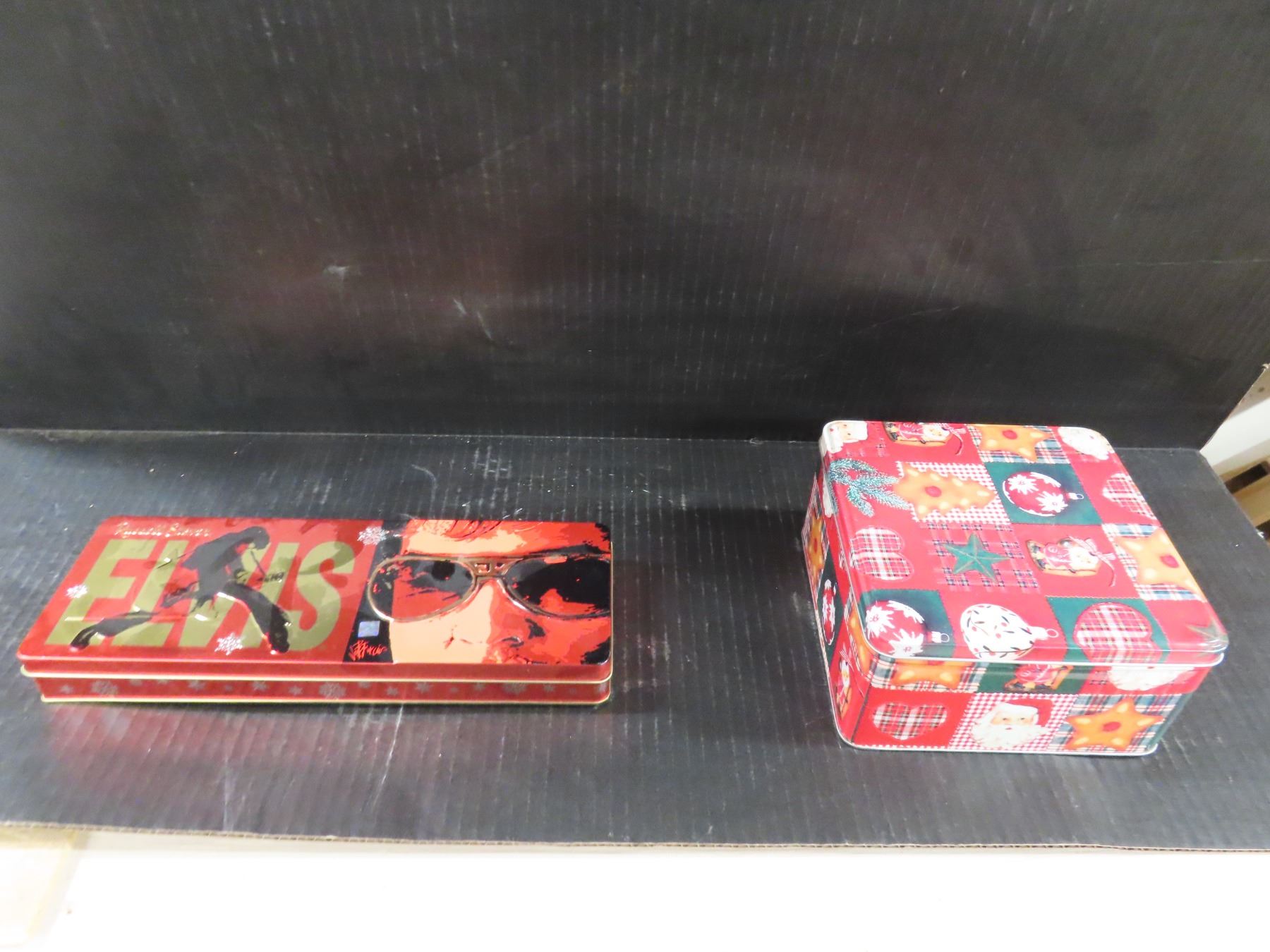 2 x Metal Tins - 1 Elvis Presley - 1 Christmas Print
