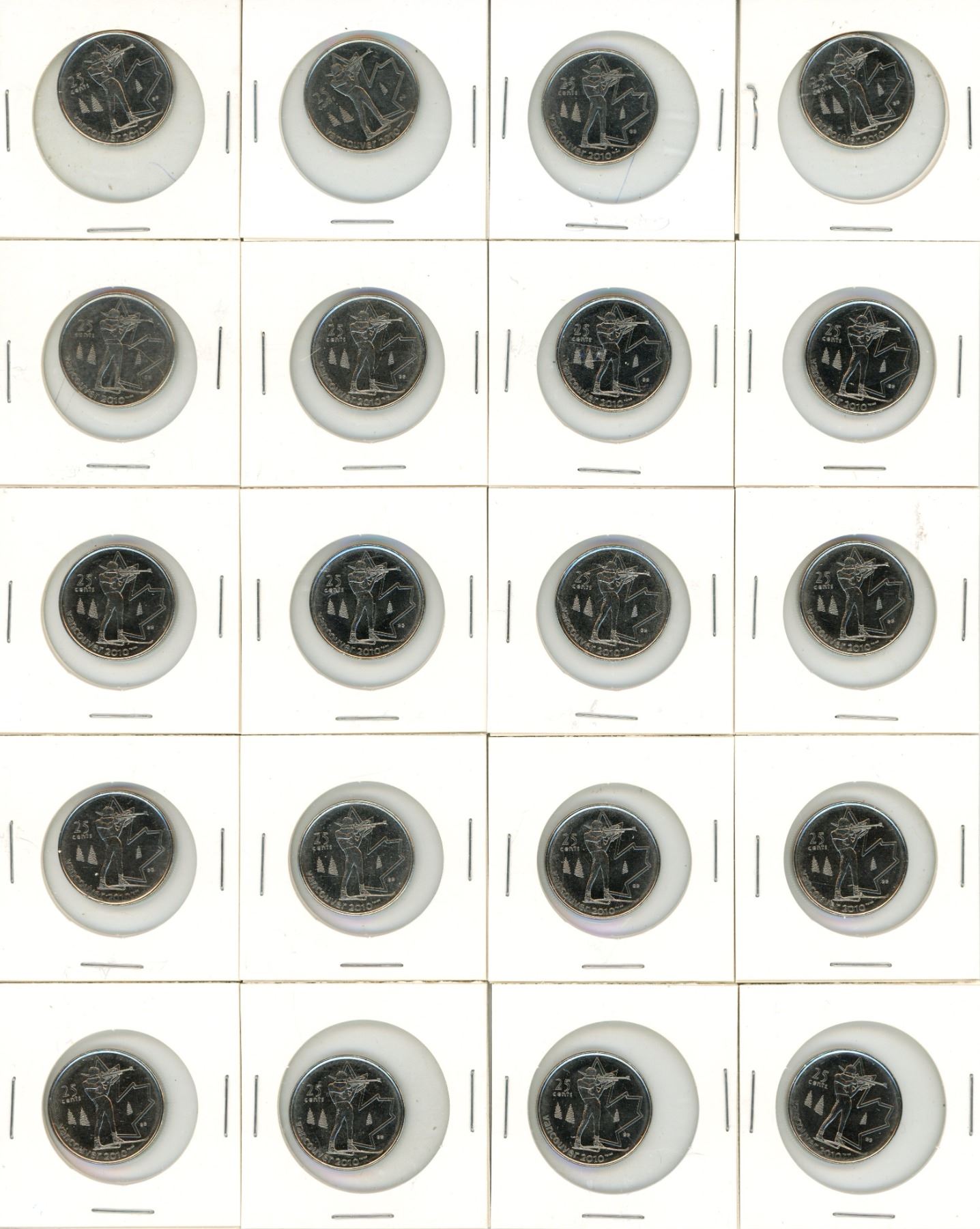 (20) 2010 Canadian Vancouver 25 Cents Coin.