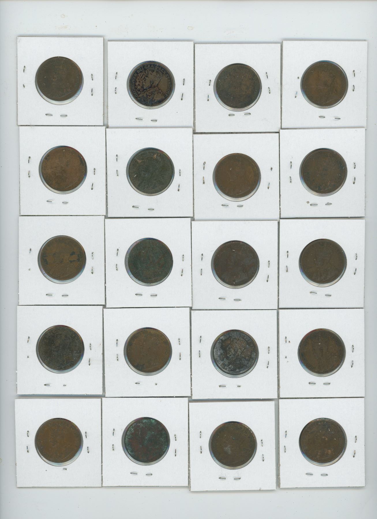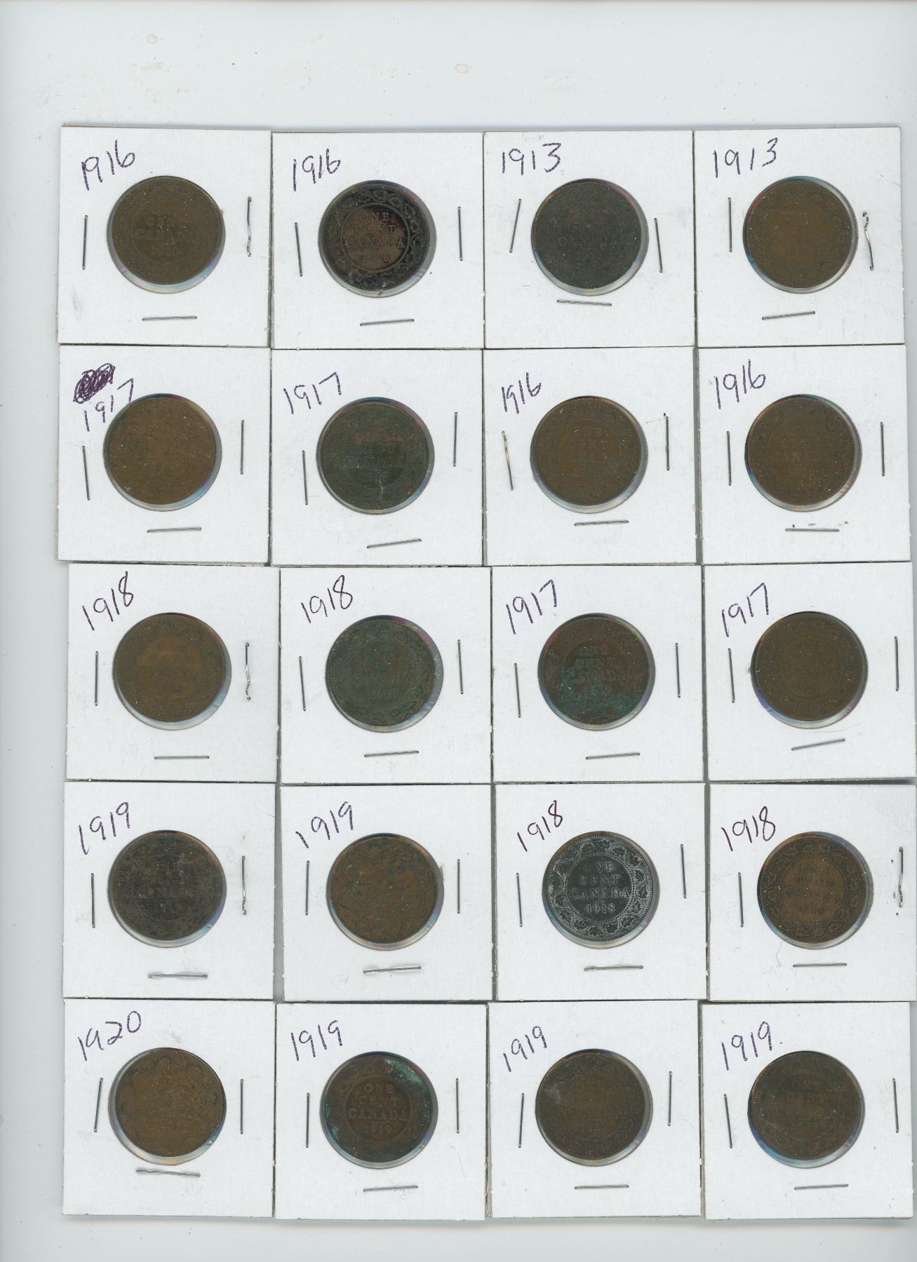 20-CANADIAN LARGE CENT 1913X2, 1916X4, 1917X4, 1918X4, 1918X4,1919X5,1920X1