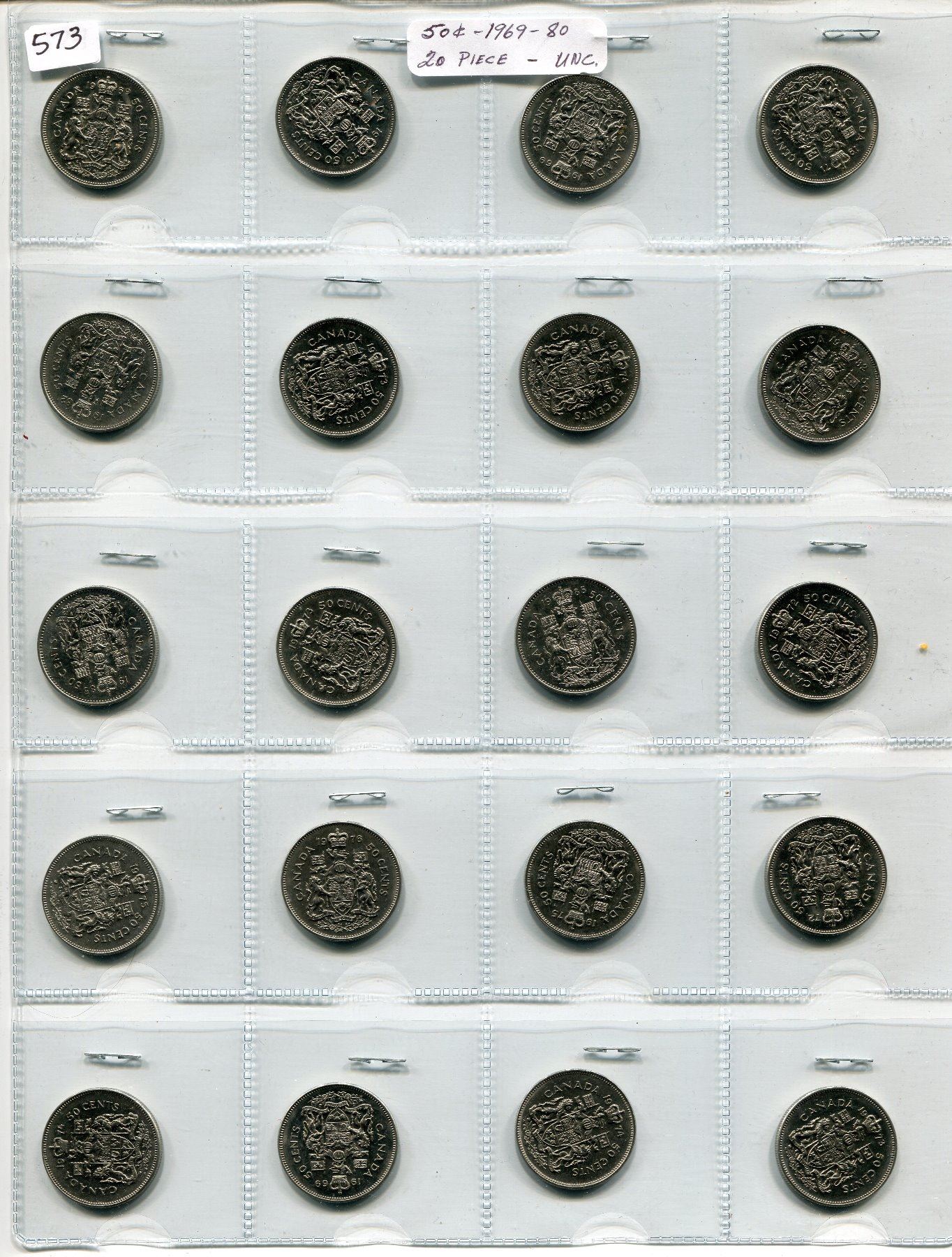 20 CNDN COINS 50 CENT PCS, 1969 TO 1980