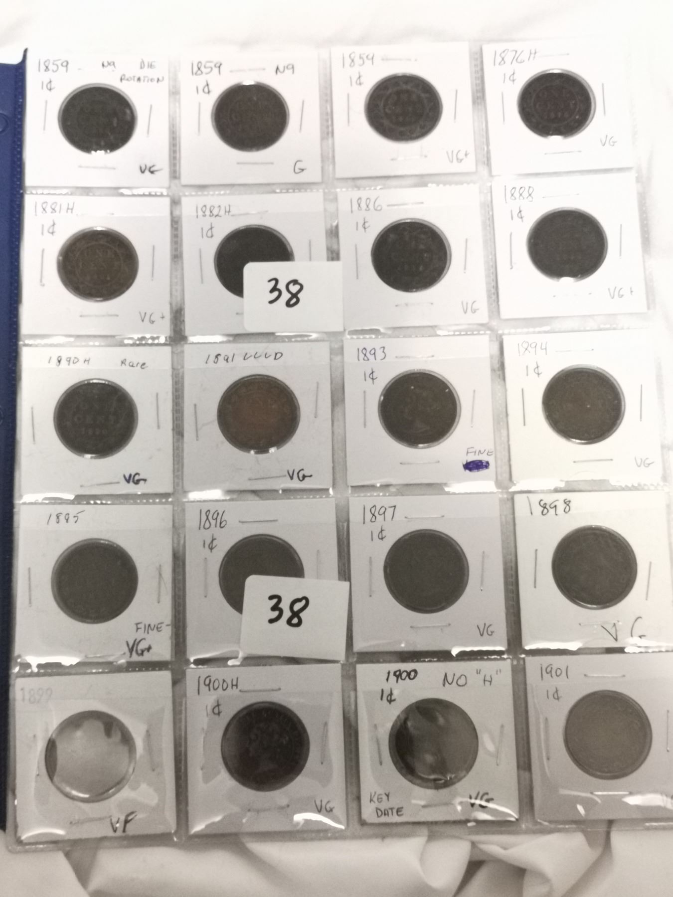 (20) Canadian Victoria Large 1 Cent Coins, Some Key Dates