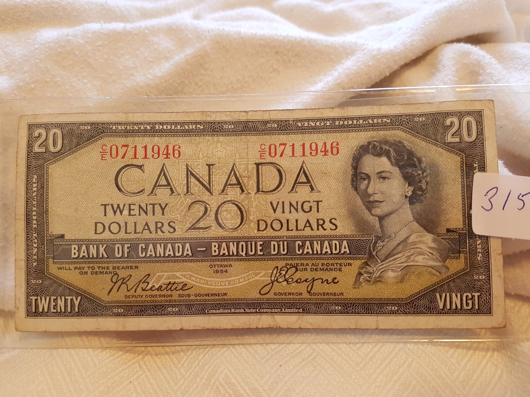 20 DOLLAR BILL (CANADA-1954) *DEVILS FACE*