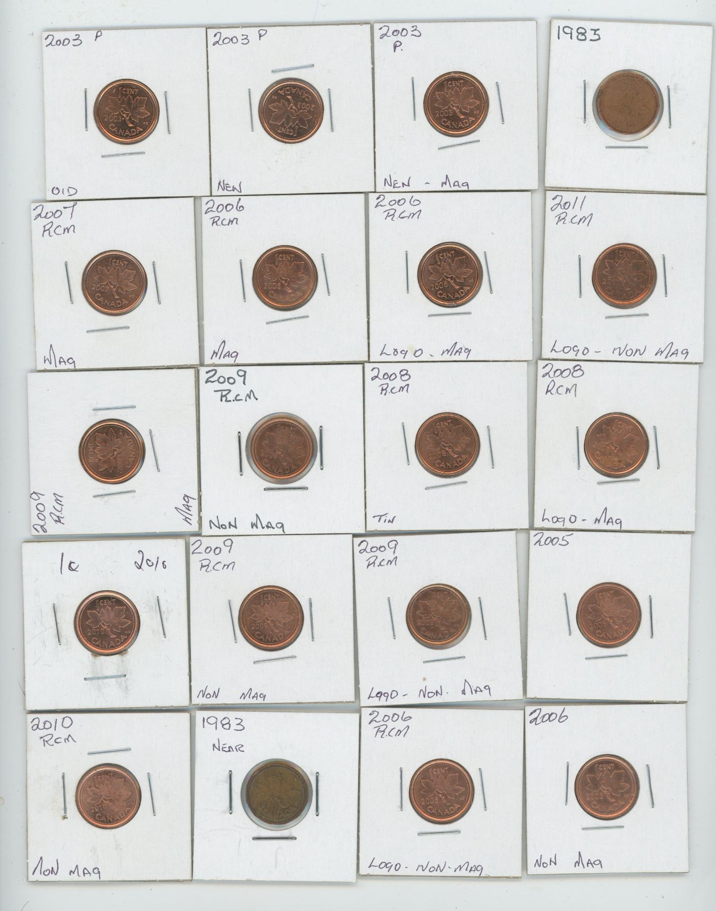 20 X Various 1983 -2004 Canadian 1 Cent Coins