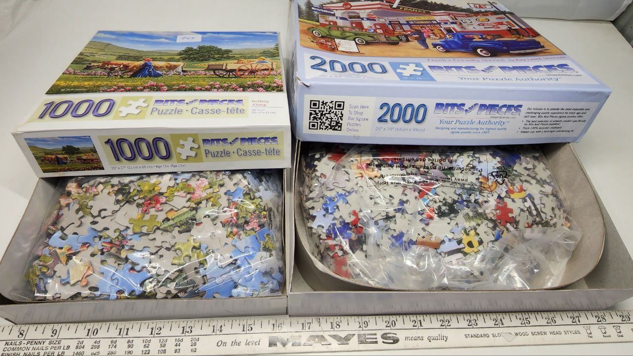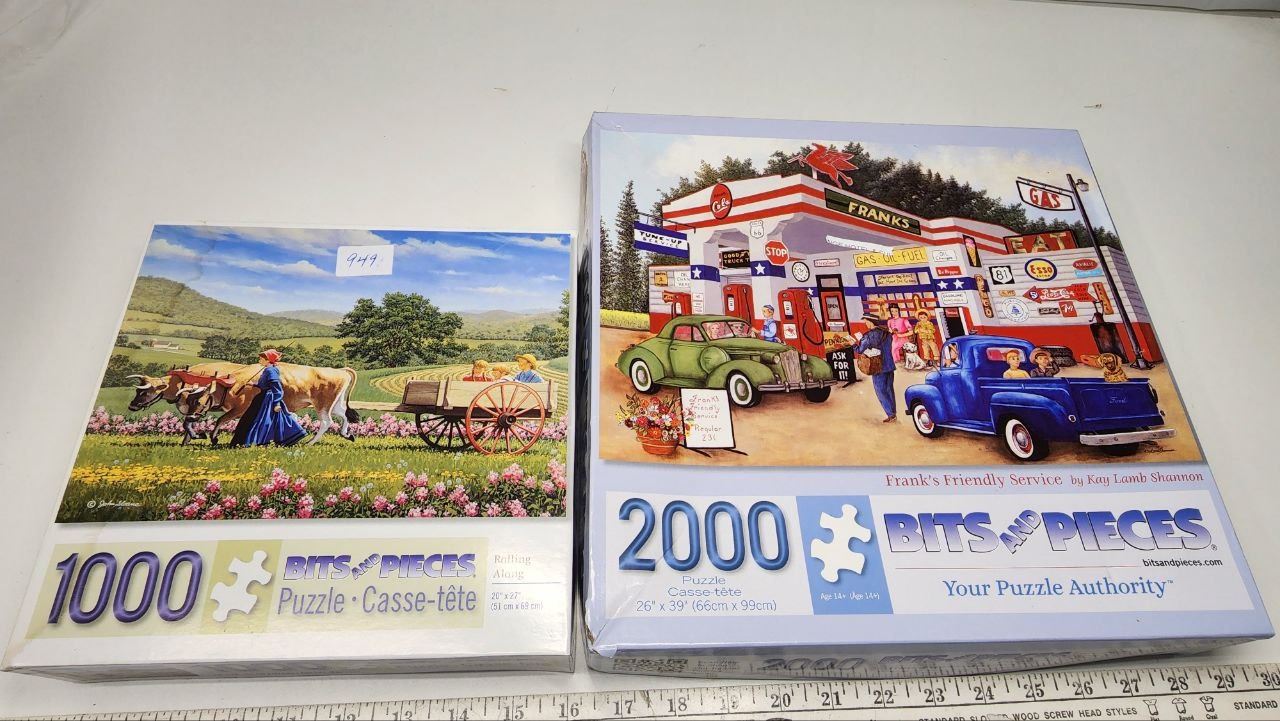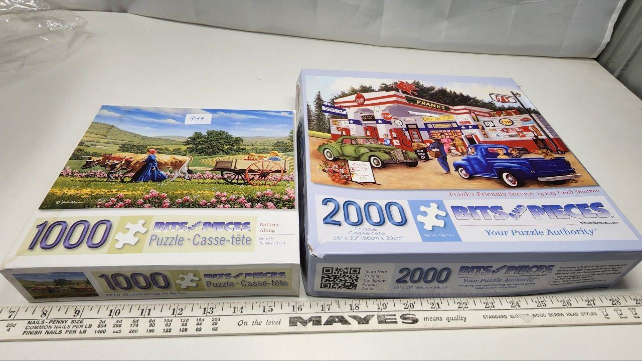 20 x27 inch - 1000 piece "Rolling Along" puzzle & 26x39 inch - 2000 piece "Frank's Friendly Service" puzzle
