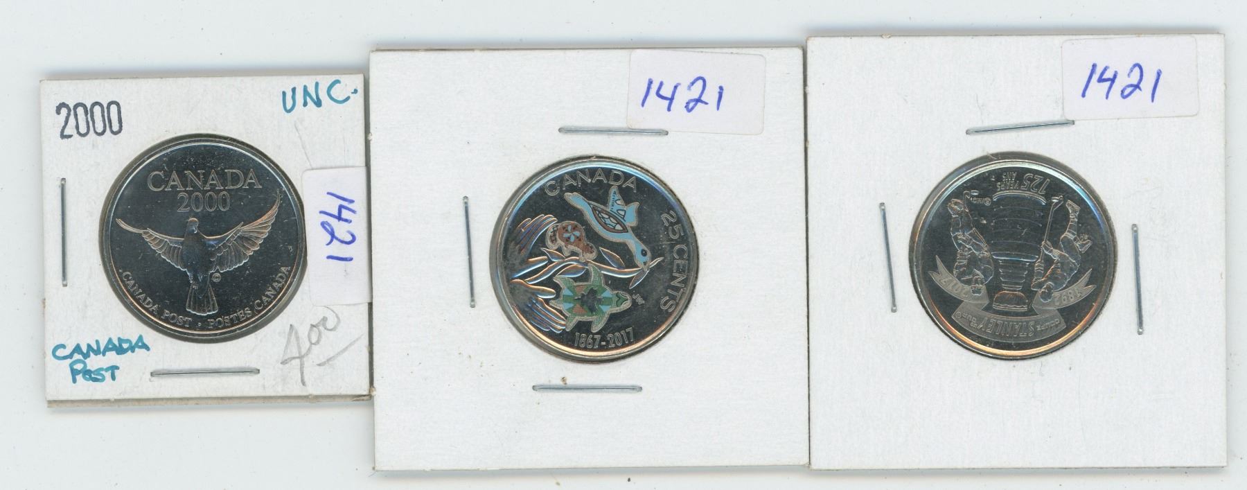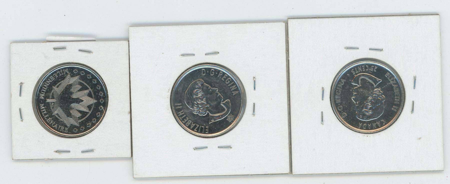 2000 & 2 X 2017 Canadian 25 Cent Coins