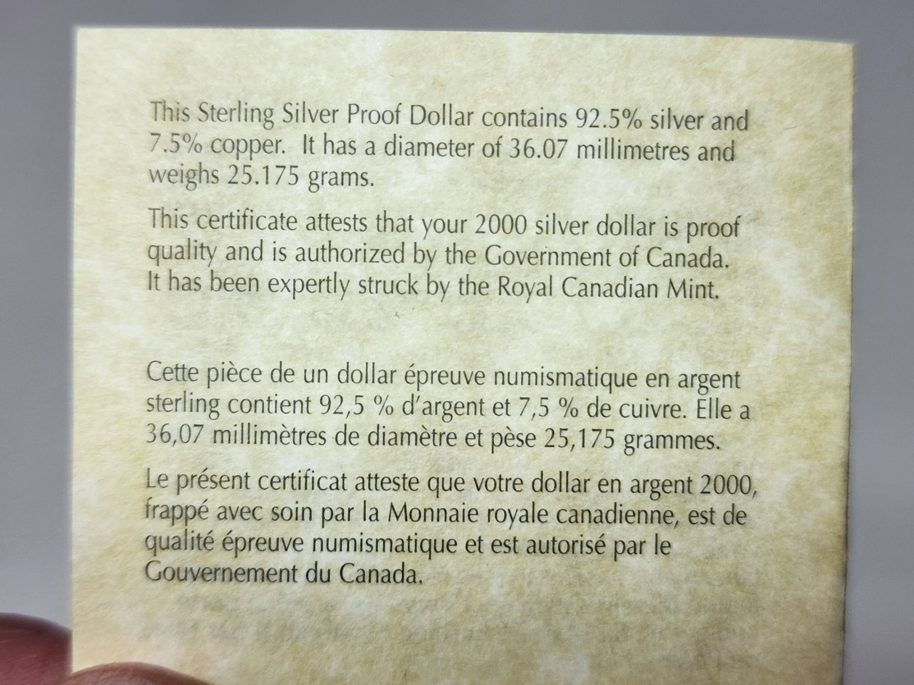 2000 Canada Sterling Silver Proof Dollar, Voyage of Discovery, COA