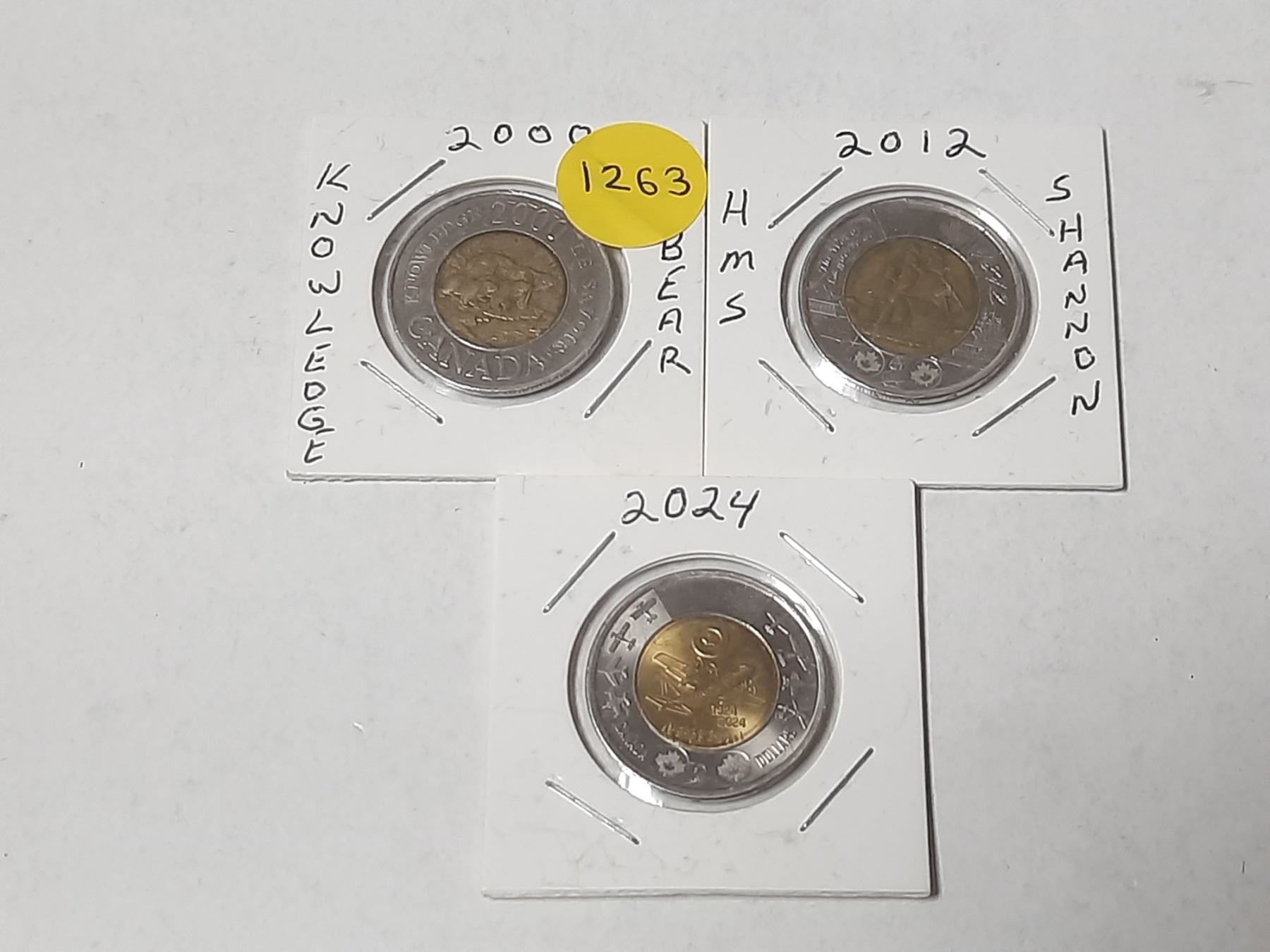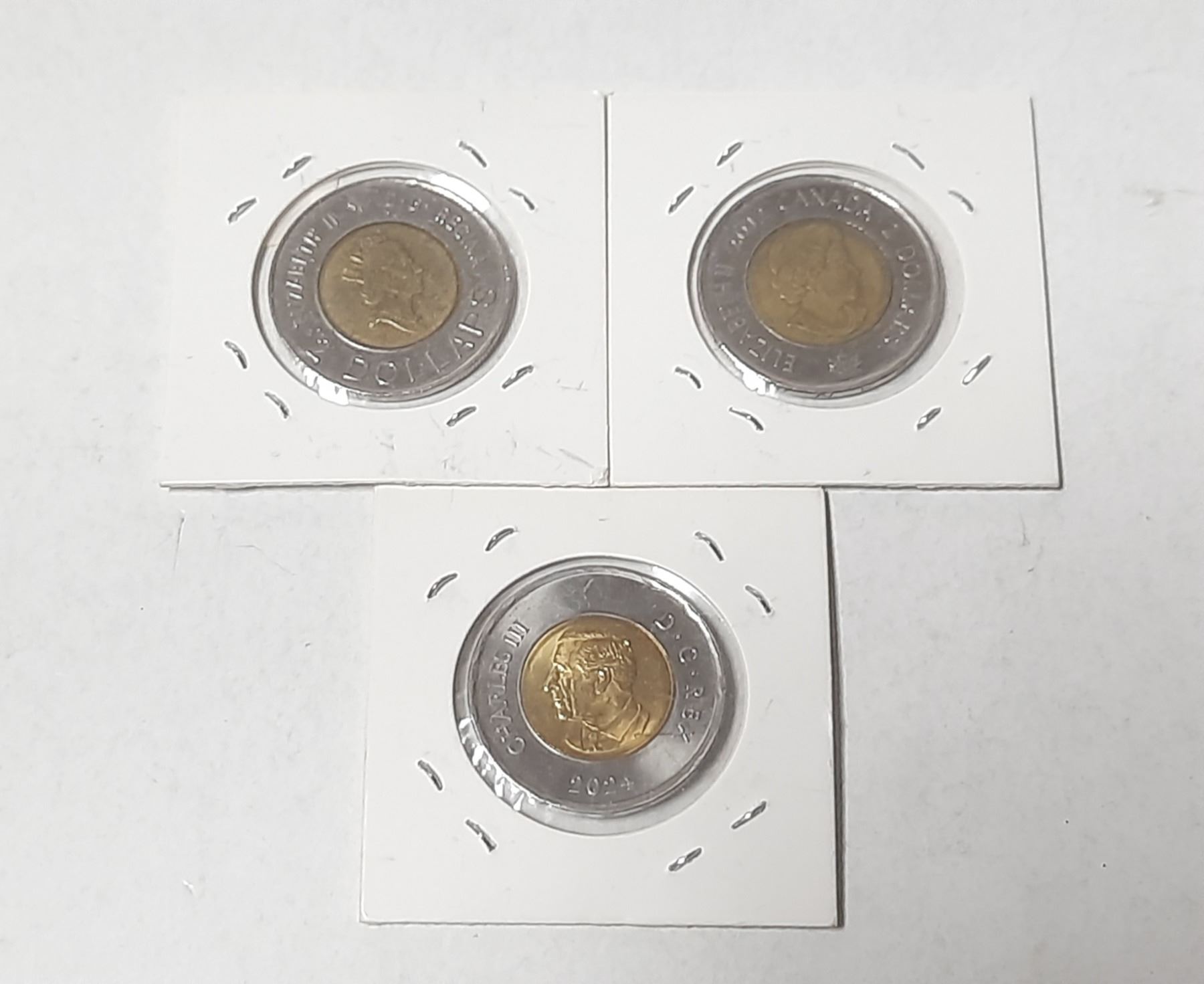 2000 "Knowledge", 2012 HMS Shannon Frigat, 2024 Air Force (RCAF) (Uncolured) Canadian Two Dollar Coins.