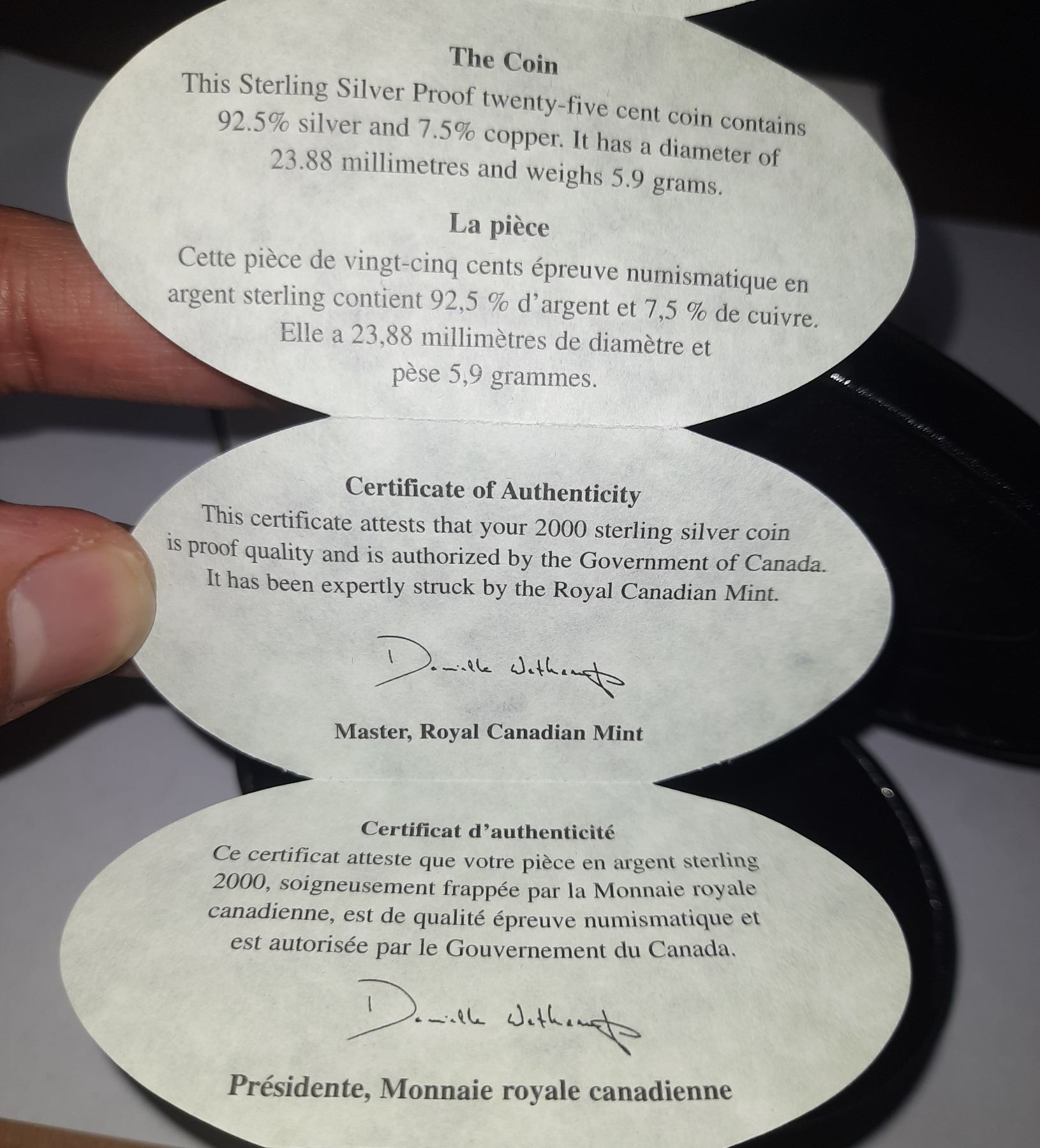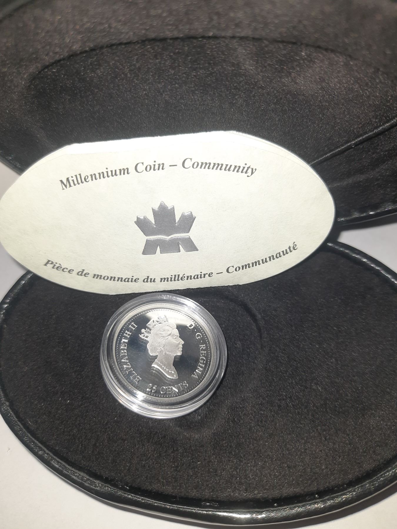 2000 Millennium Twenty-Five Cent Sterking Silver Coin in Oval Black Case.