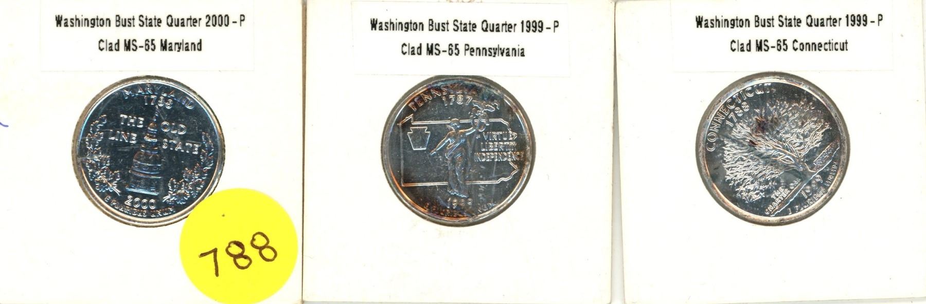 2000-P Maryland, 1999-P Pennsylvania, 1999-P Connecticut U.S.A Quarters.