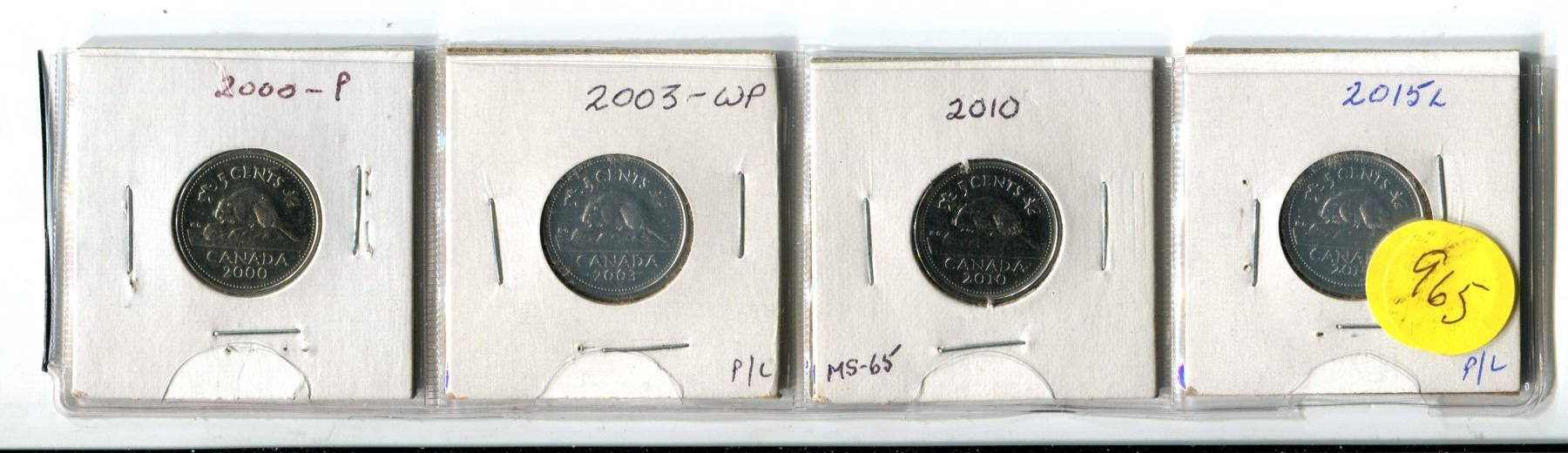 2000P, 2003WP, 2010, 2015L, all MS-63 Five Cent Coins