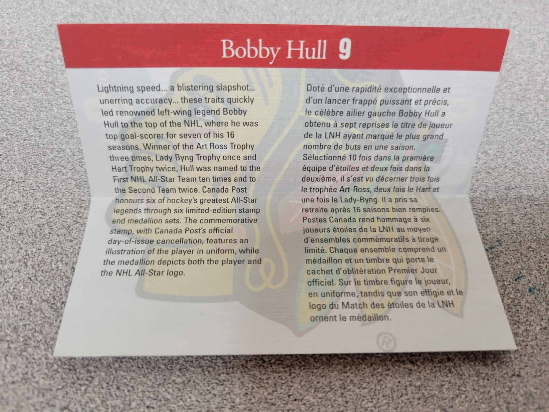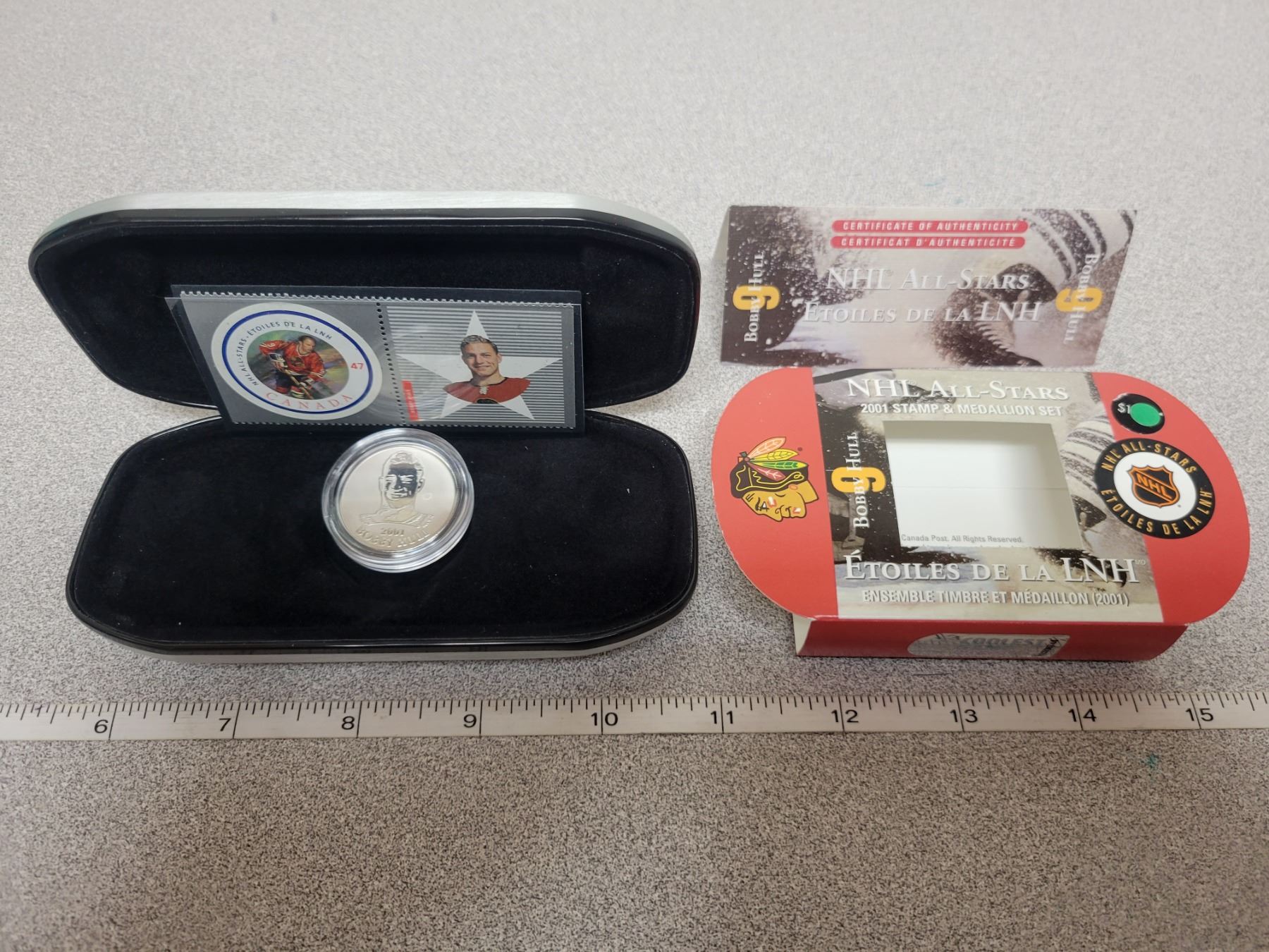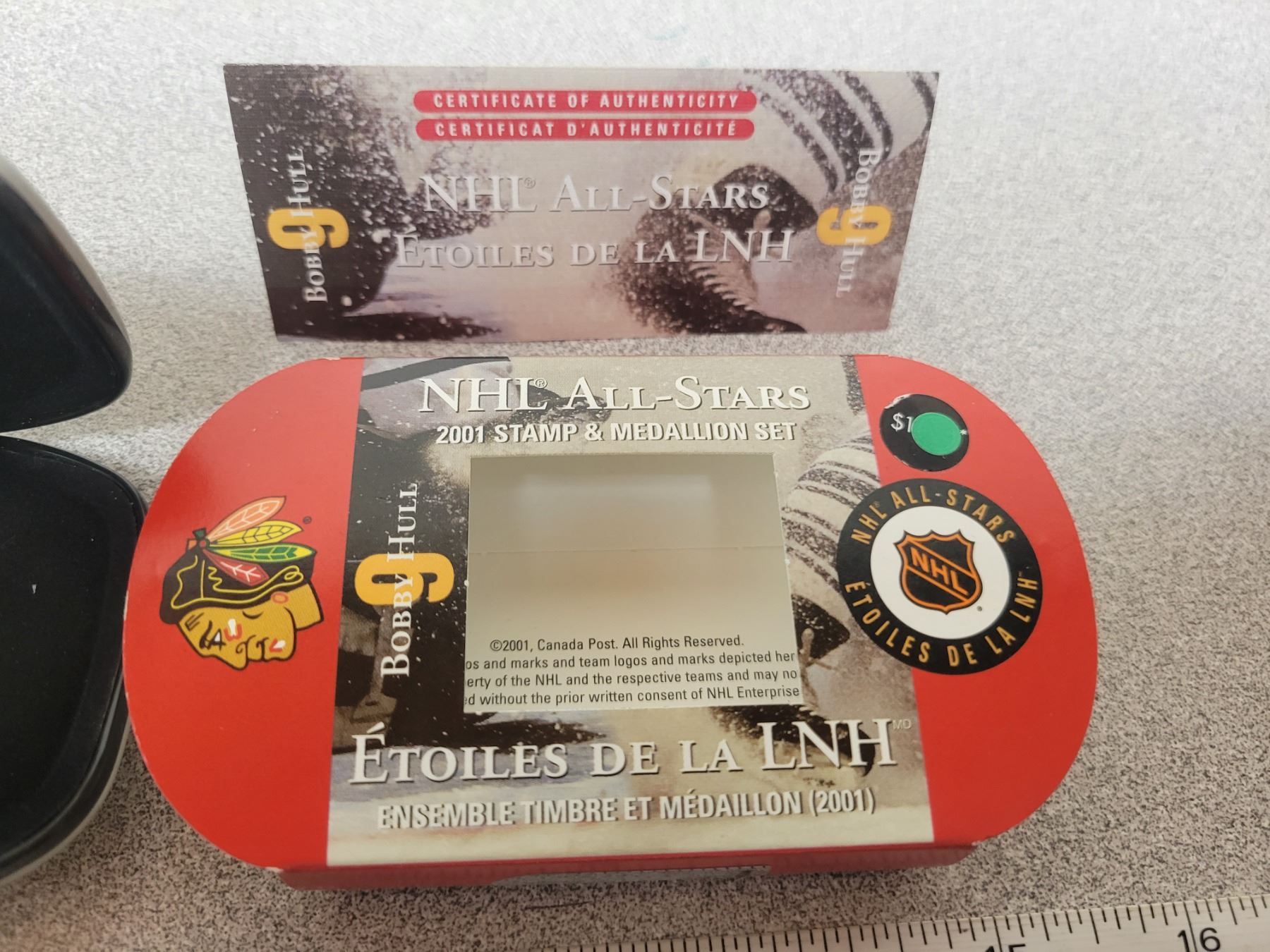 2001 Bobby Hull stamp & medallion silver coin set in case