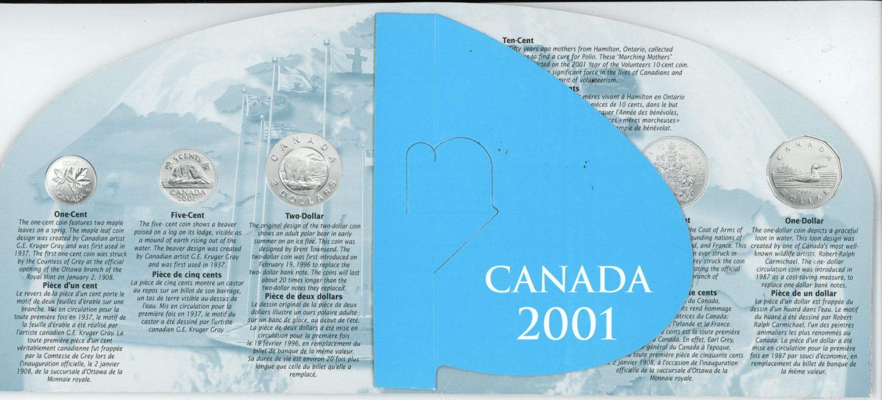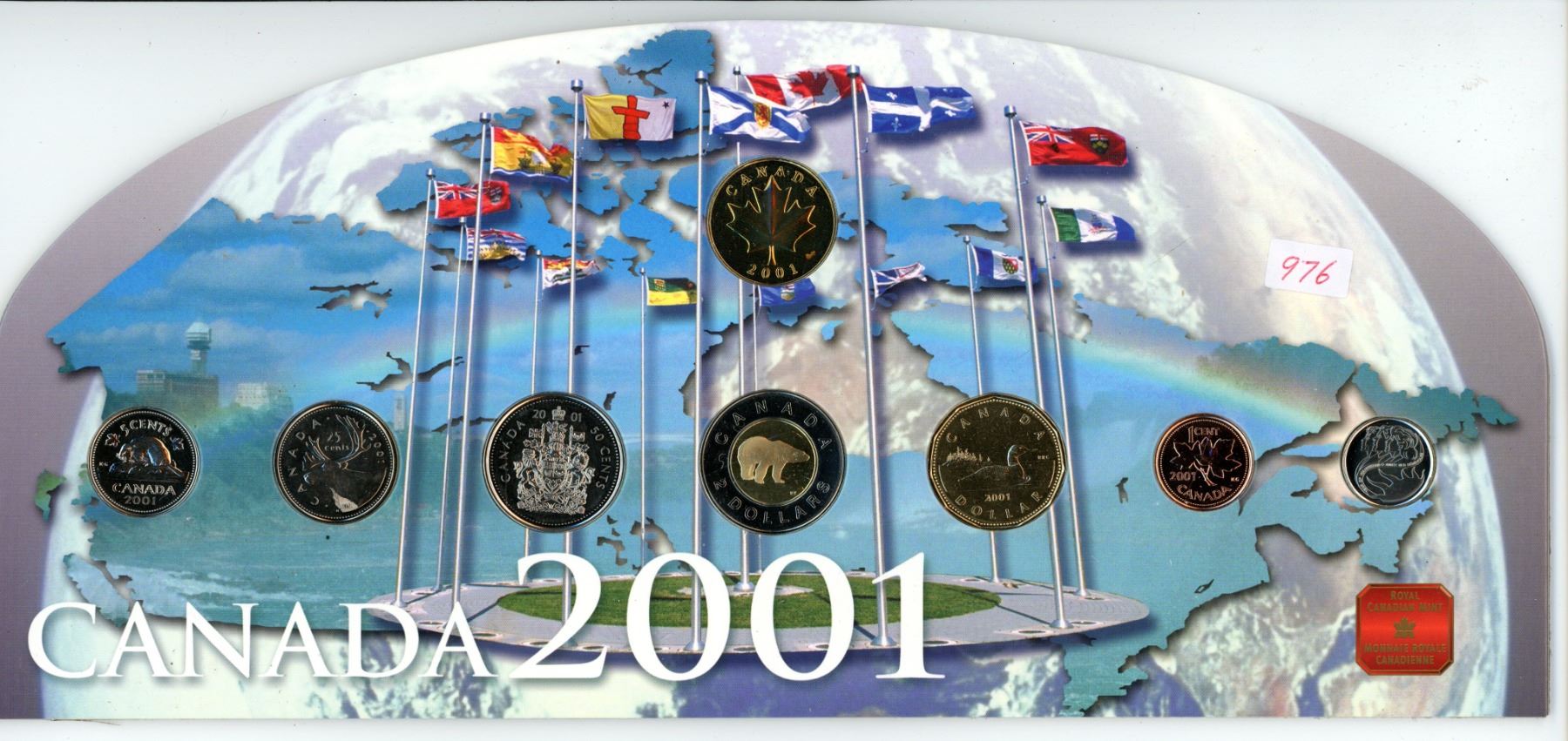2001 Canadian Mint Set. All denominations plus one brass Mint Medal. Housed in its original packaging.