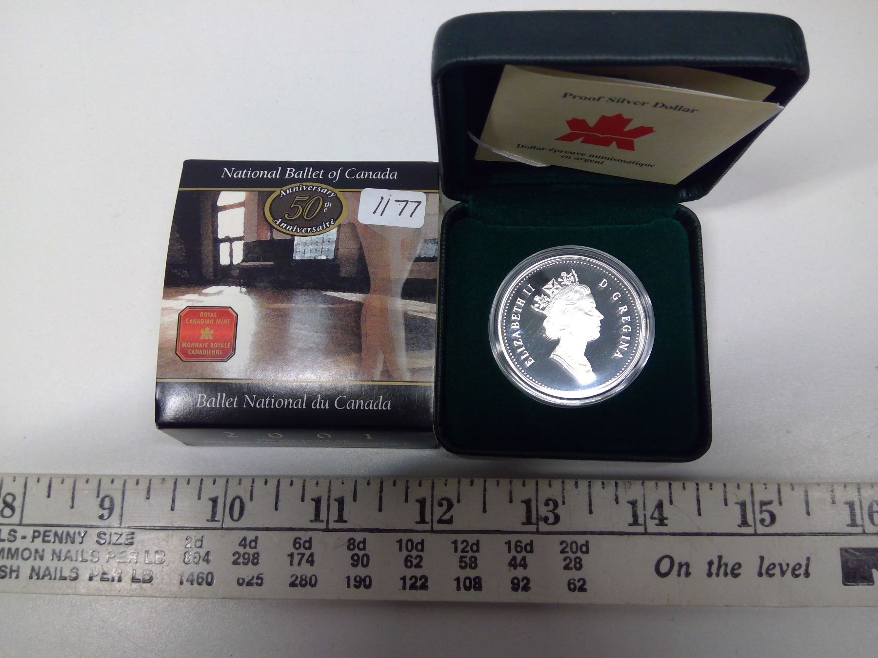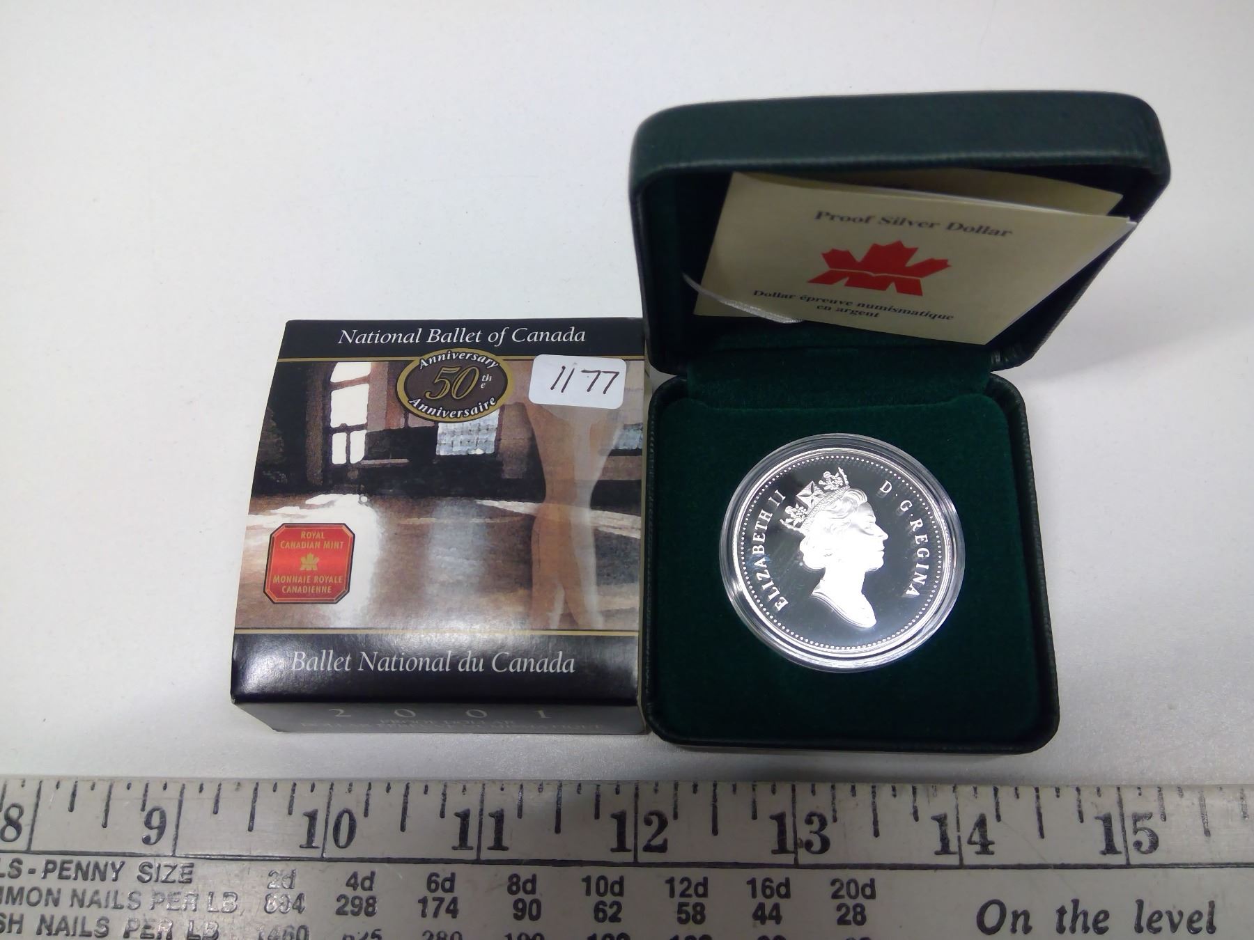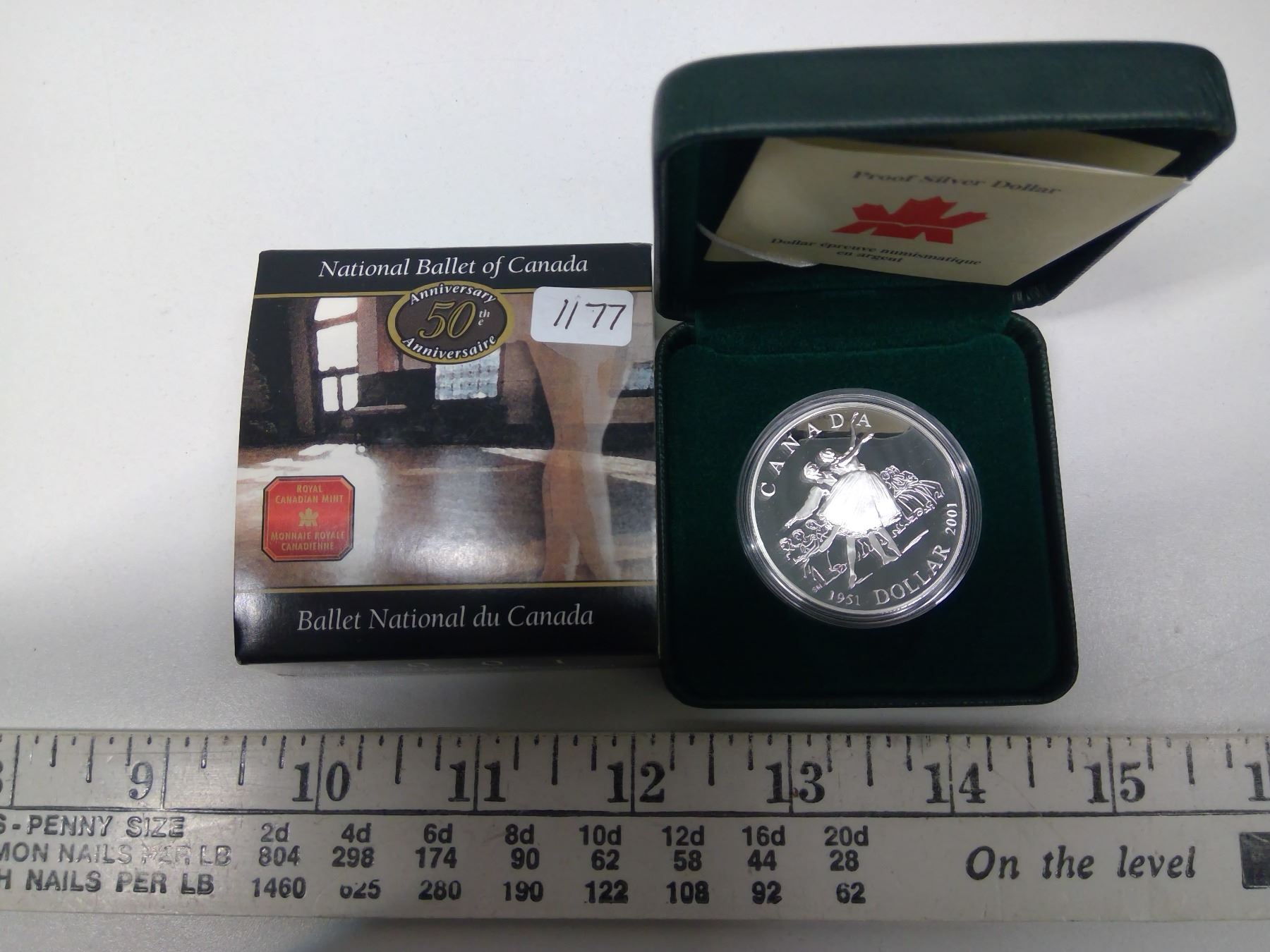2001 Canadian Silver Dollar. 50th Anniversary of the National Ballet of Canada. Sterling Silver. Proof. In green case of issue.