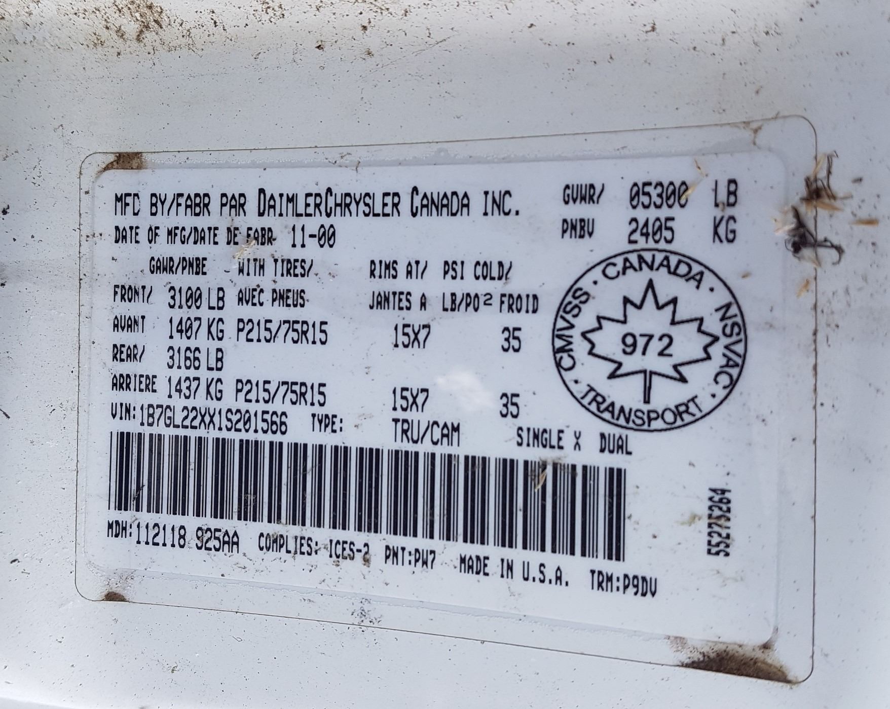 2001 DODGE DAKOTA CLUB CAB 2WD VIN 1B7GL22XX1S201566 (No Keys)