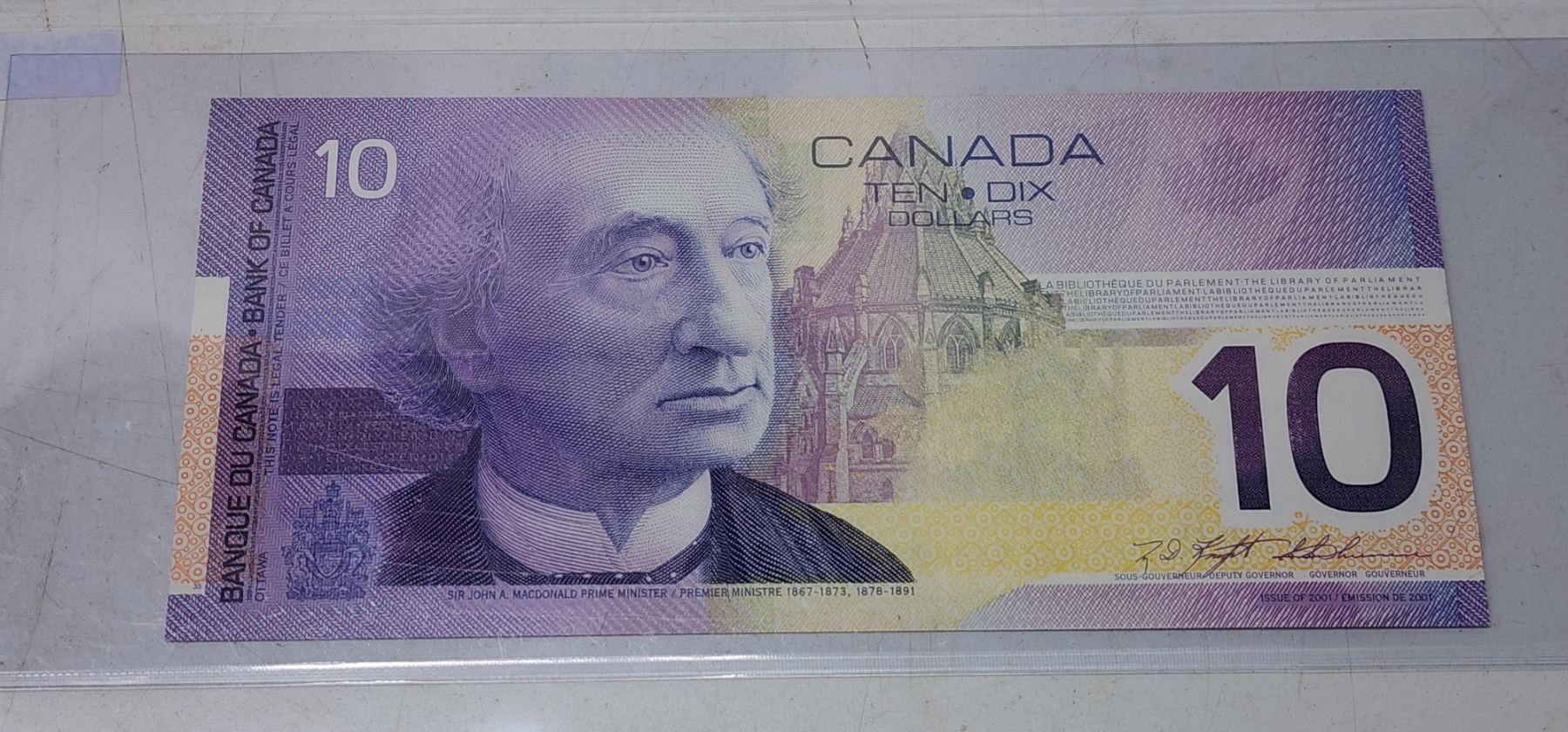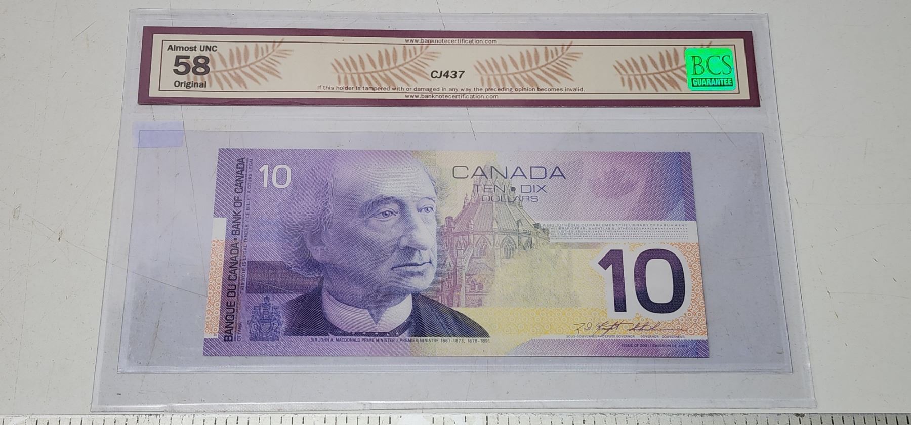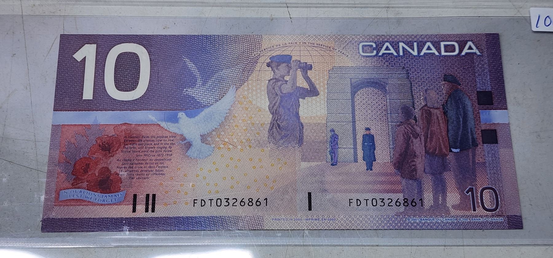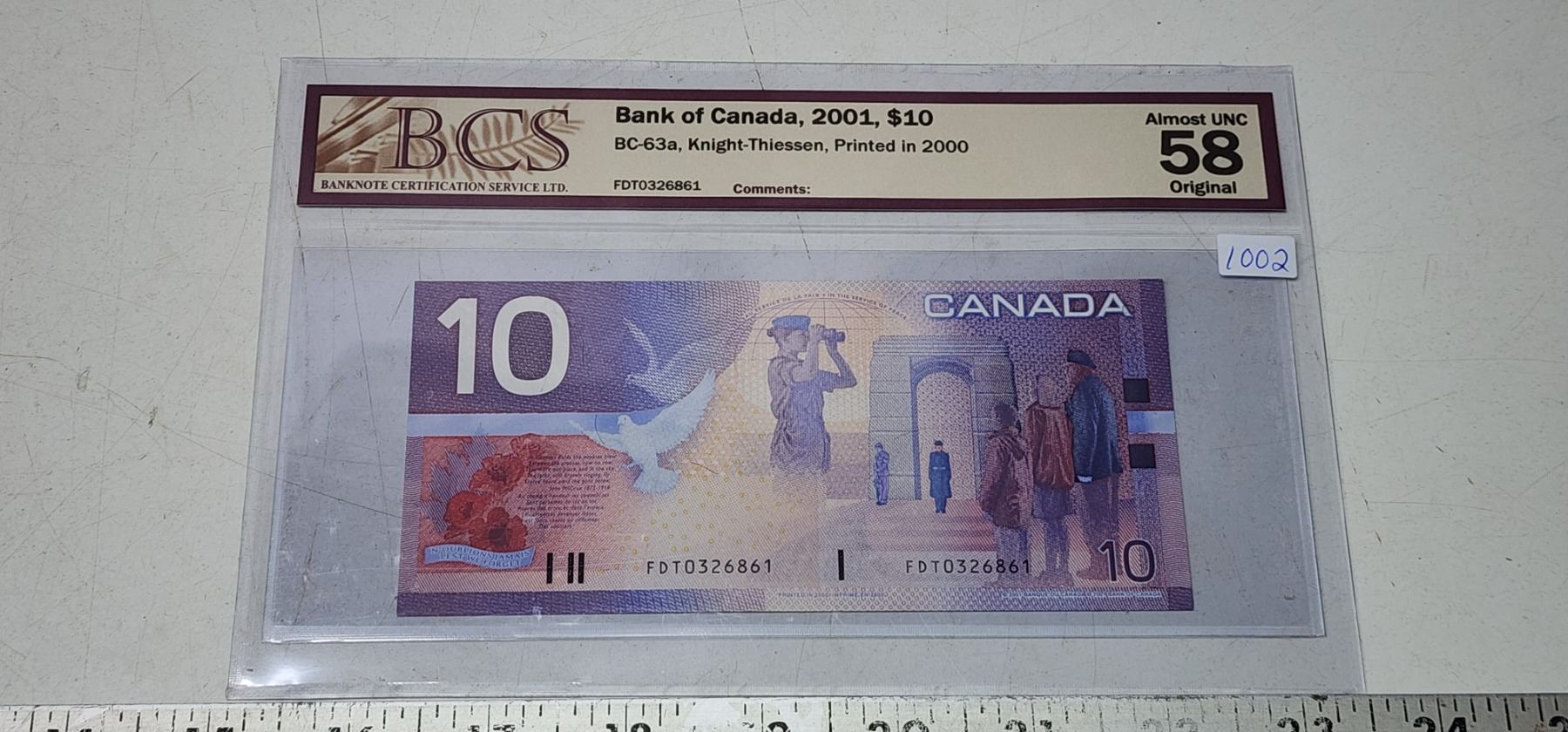 2001 Graded Canadian $10 bill - Knight/Thiessen - EDT prefix - 0326861 - UNC 58