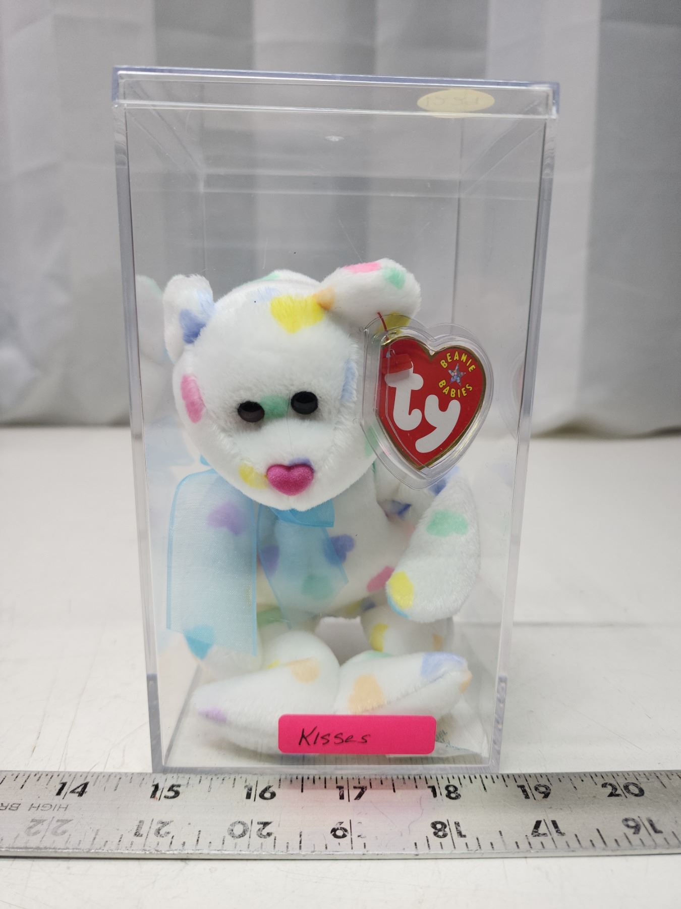 2001 "Kiss Me" (spelled Kissme), collectible bear, ty beanie baby - in clear case, like new