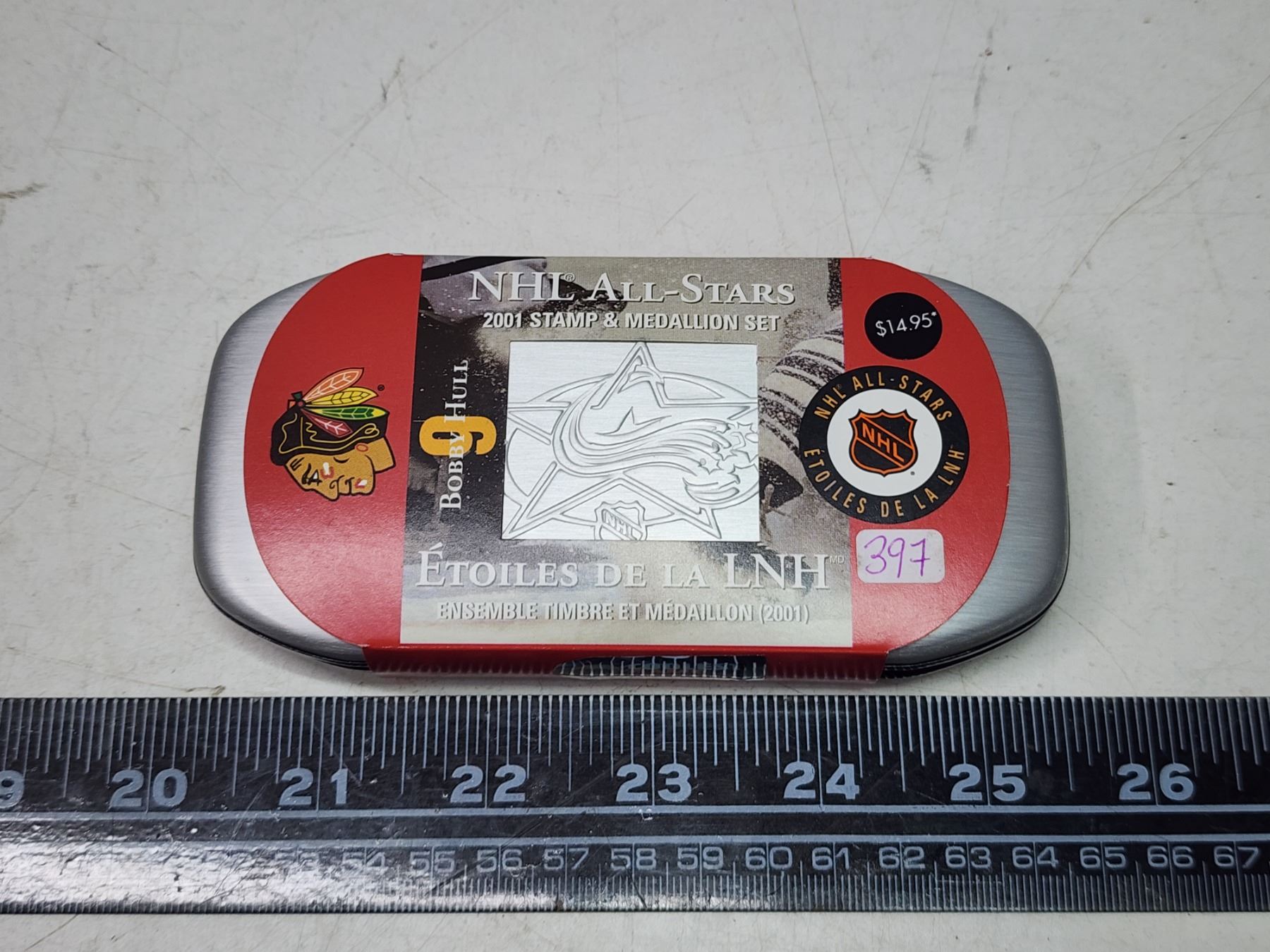 2001 NHL All stars, Blackhawks Bobby Hull stamp & medallion set