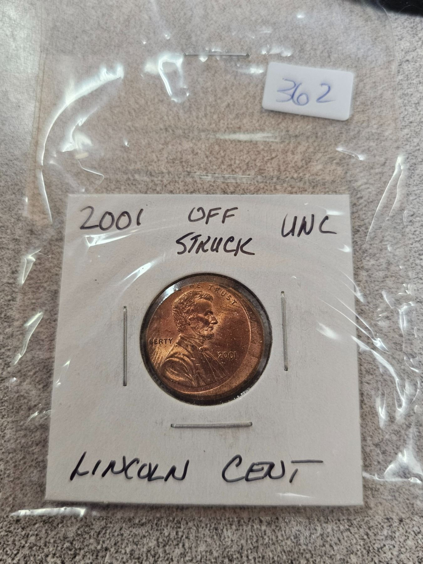 2001 off-struck uncirculated Lincoln cent