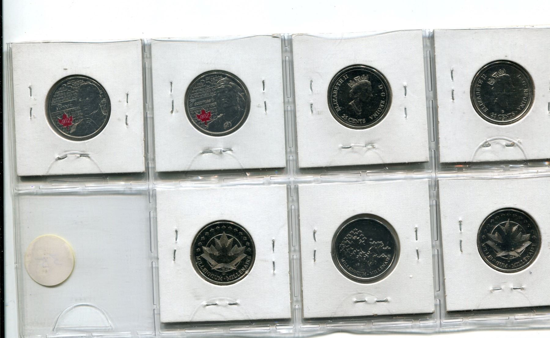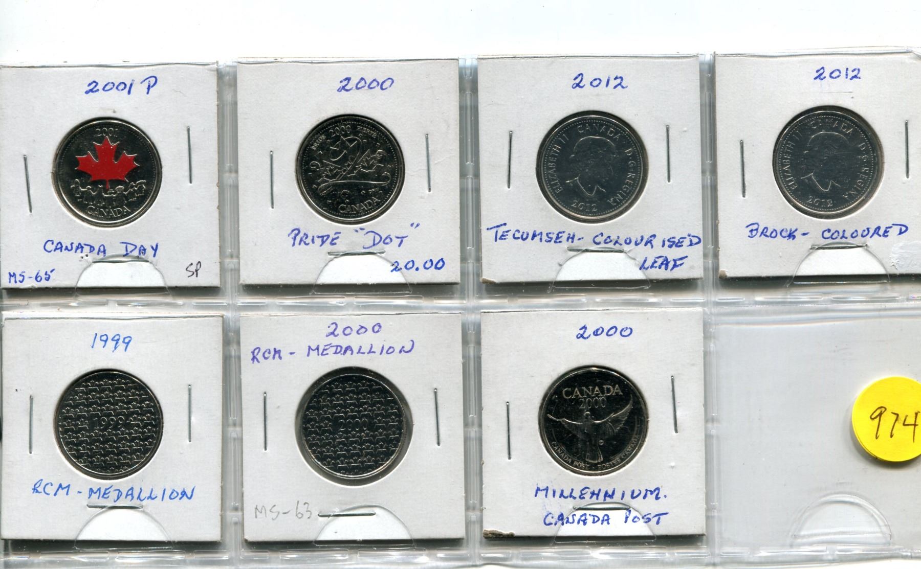 2001P Canada Day, 20.00 Pride Dot, 2012 Tecumseh & Brock Coloured Twenty-Five Cent Coins Plus Three Medallions