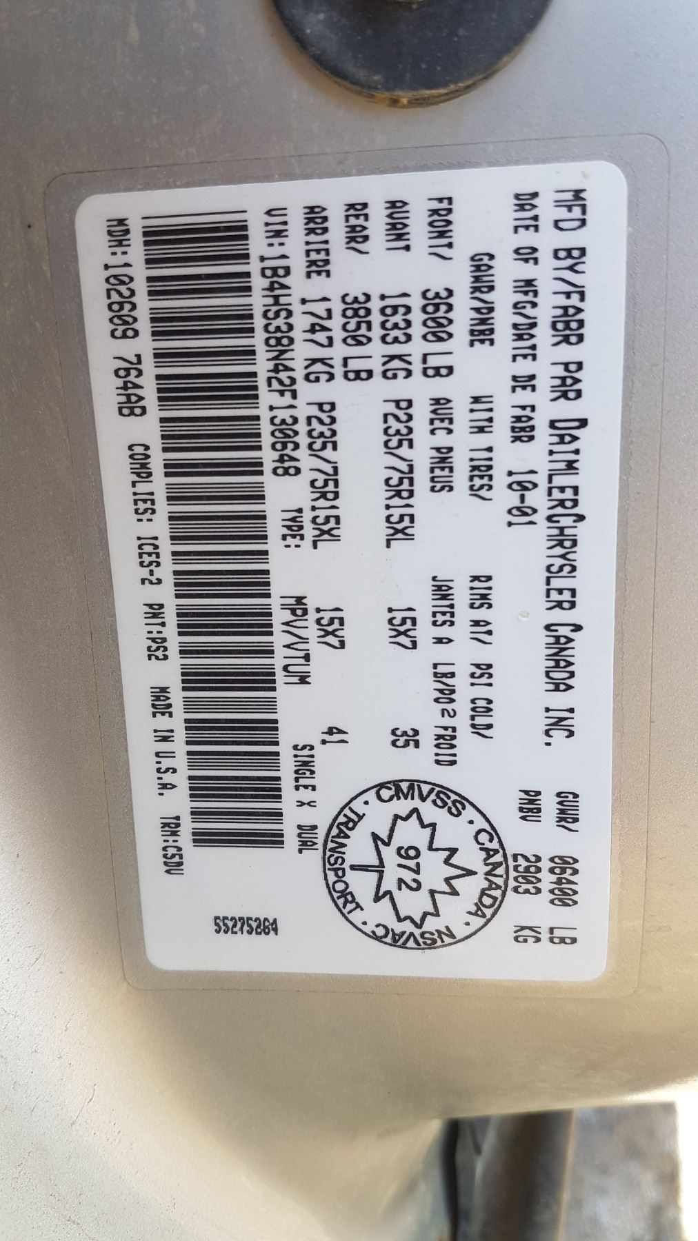 2002 DODGE DURANGO 4WD 1B4HS38N42F130648 "SK REGISTERED" (HAS KEYS)