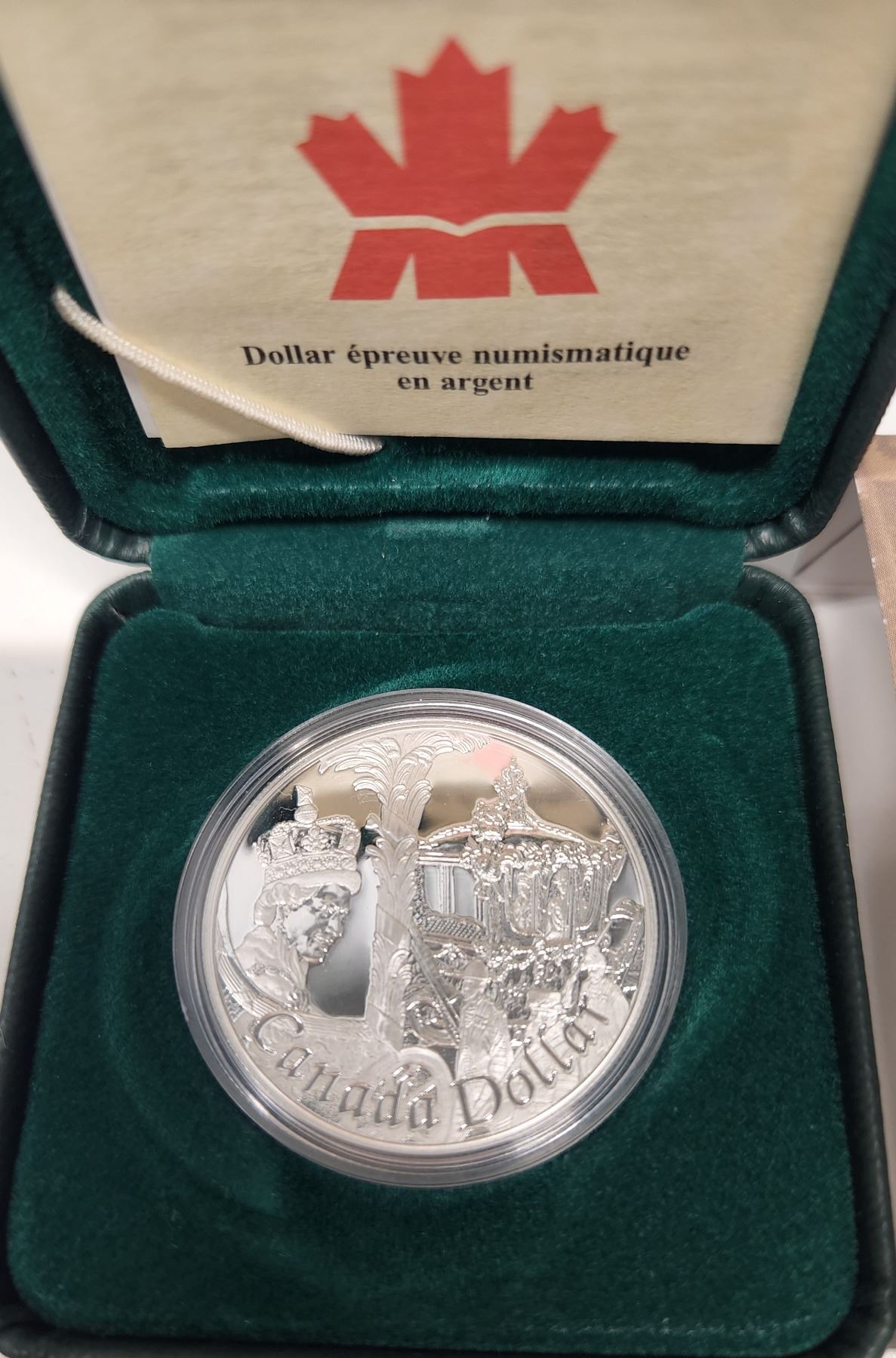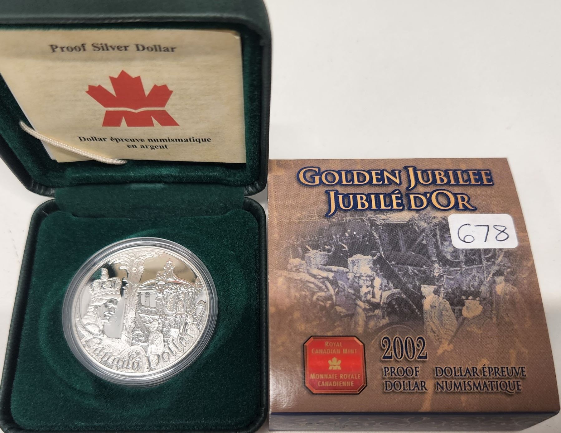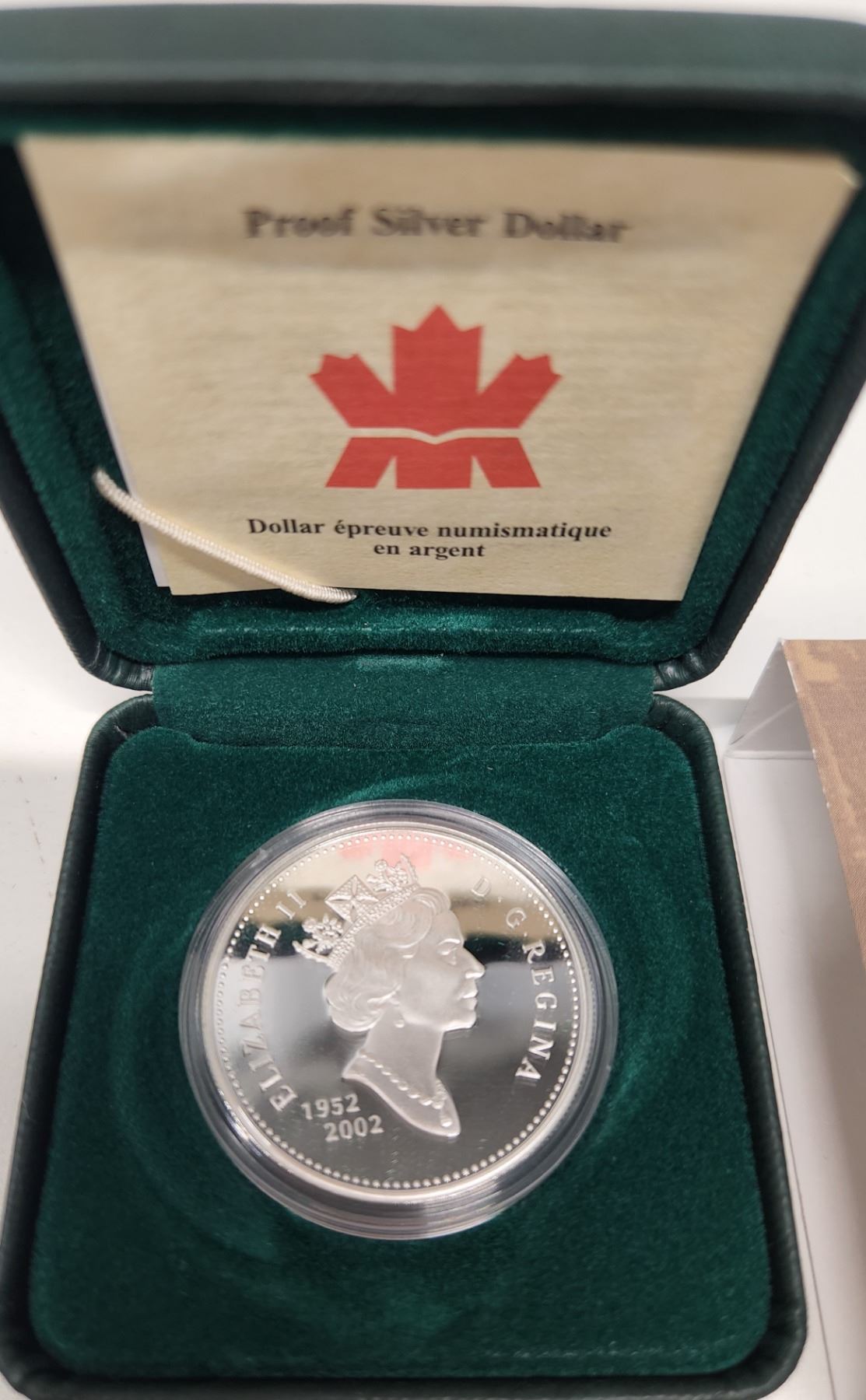 2002 Golden Jubilee Proof Silver Dollar. Celebrates the 50th Anniversary of Queen Elizabeth accession to the throne. Sterling Silver. Bright White with Ultra Heavy Cameo. In case and box of issue.