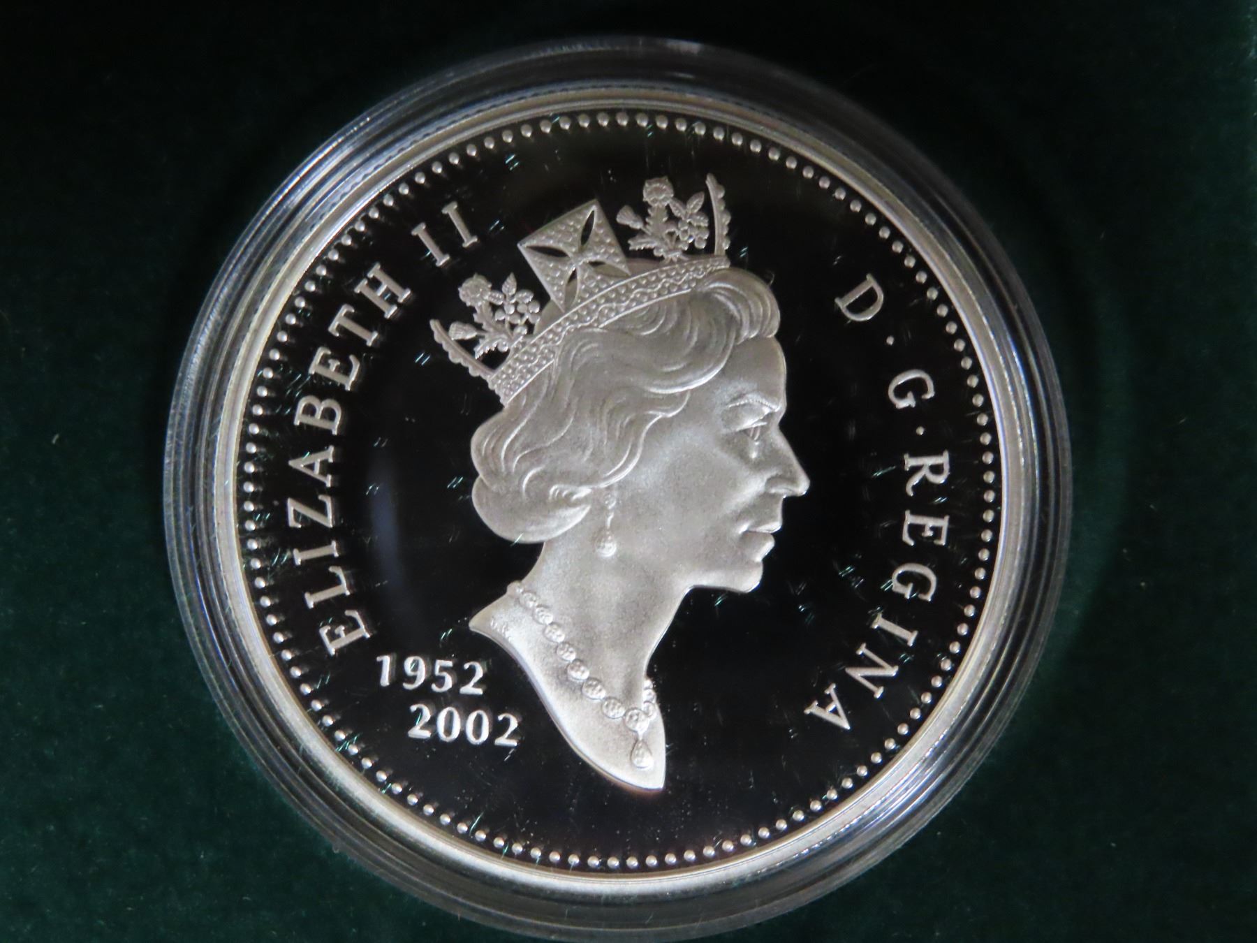 2002 Queen Elizabeth Golden Jubilee Proof Silver Dollar. Proof with Ultra Heavy Cameo. Bright White. Housed in its original green case & box of issue.