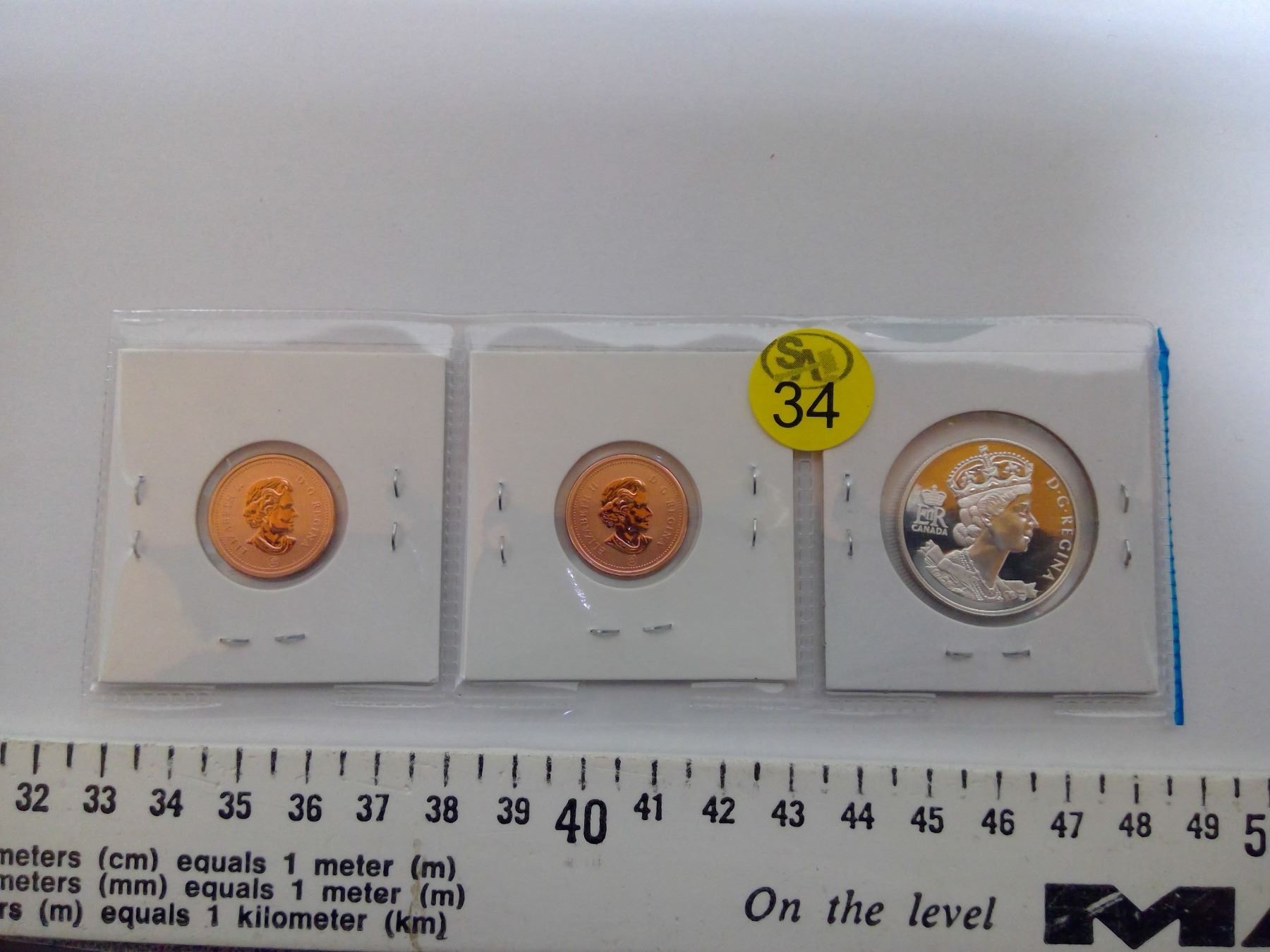 2002 SILVER 50 CENT PIECE, 2 PENNIES 2010 & 2012