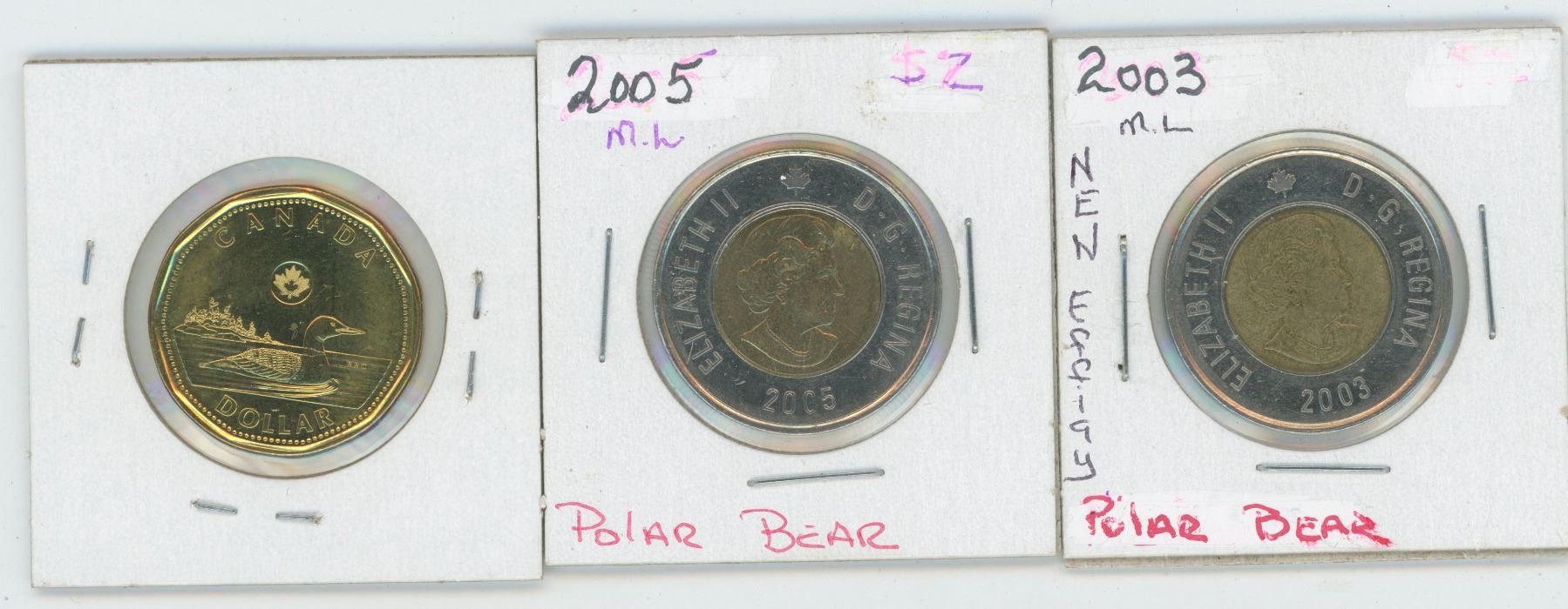 2003& 2005 Canadian 2 Dollar Coin & 2014 1 Dollar Canadian Coin