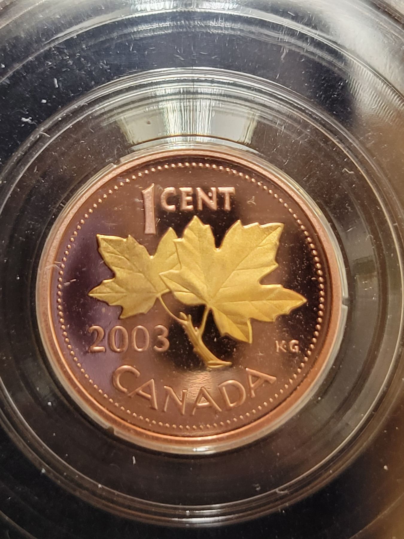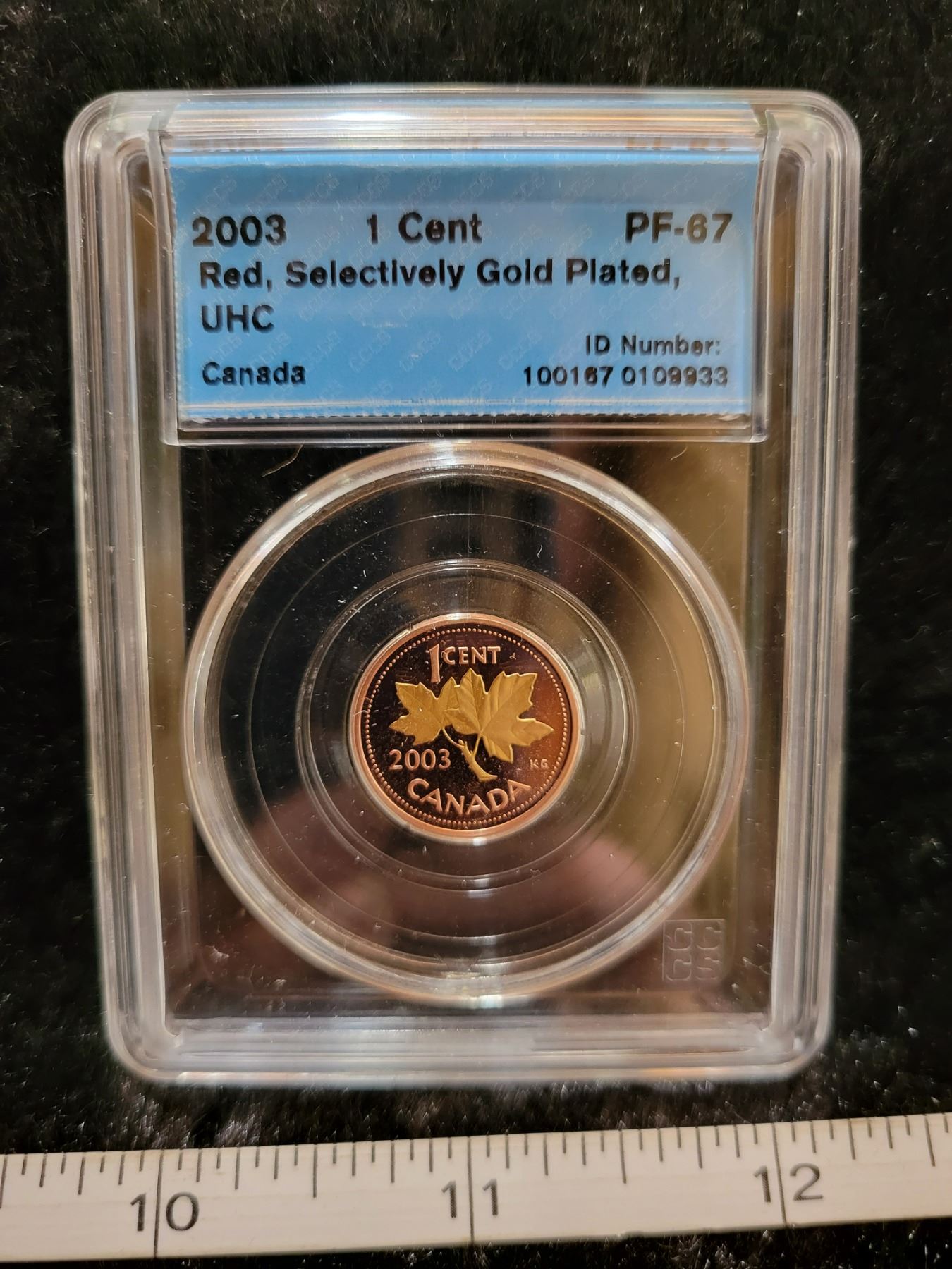 2003 Canada 1¢ one cent penny Red, Selectively Gold Plated, UHC CCCS PF-67