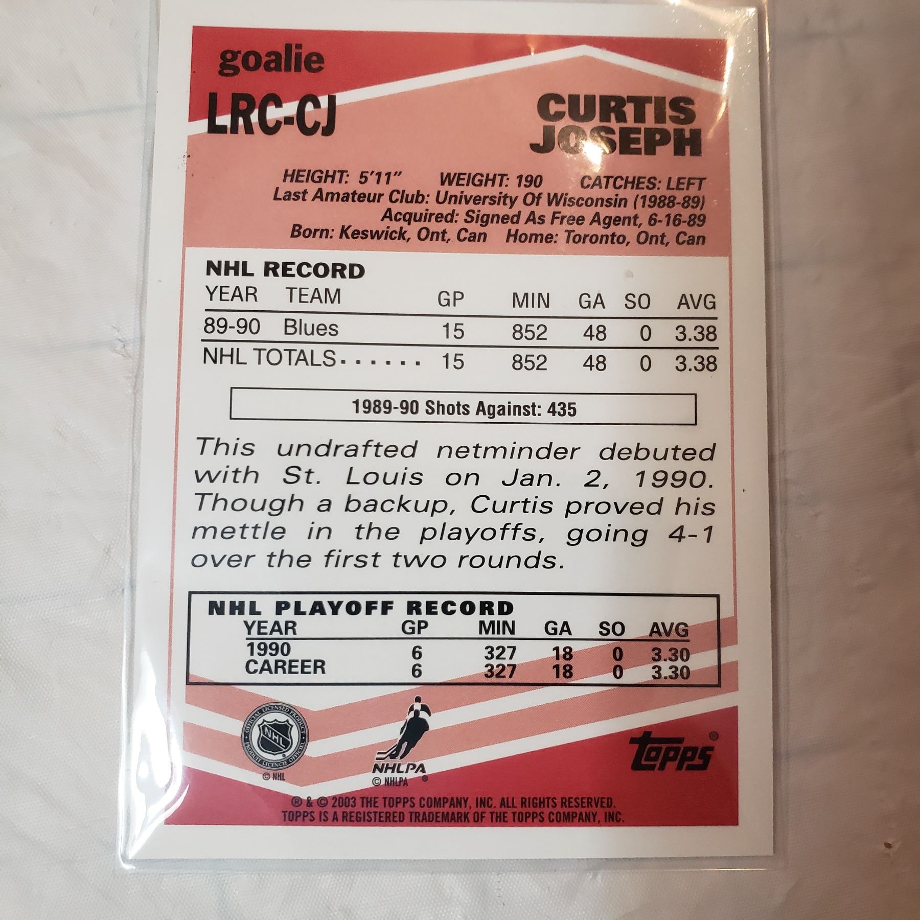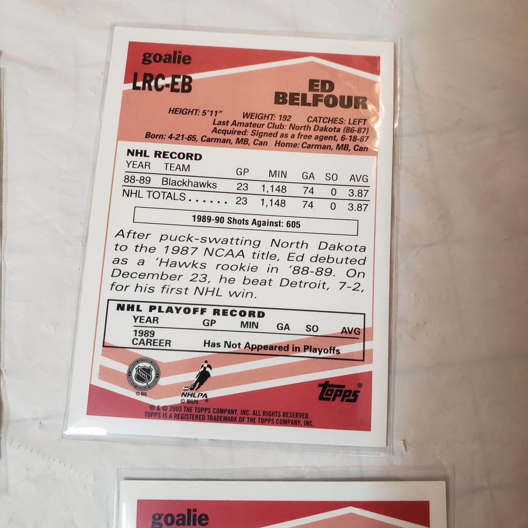 2003 TOPPS inserts Roy Belfour Cujo Joseph Goalie Rookies
