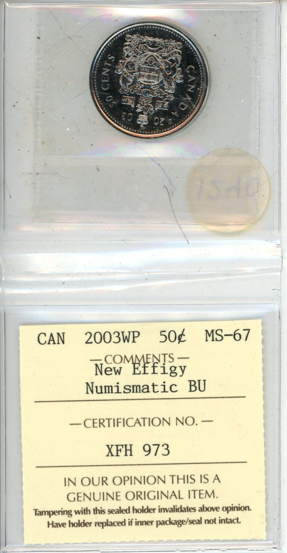 2003 WP Canadian Fifty Cents - ICCS MS-67 New Effigy, Nusmatic BU