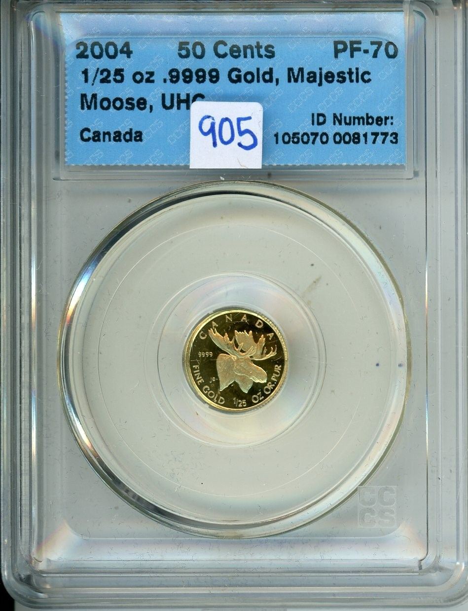 2004 1/25 oz .9999 gold, Majestic Moose, Ulta Heavy Cameo CCCS PF-70
