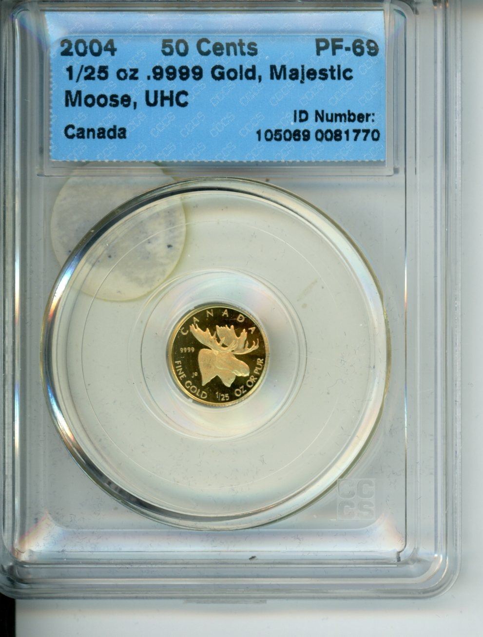 2004 50 cents 1/25 oz .9999 gold "Majestic Moose" CCCS PF-69