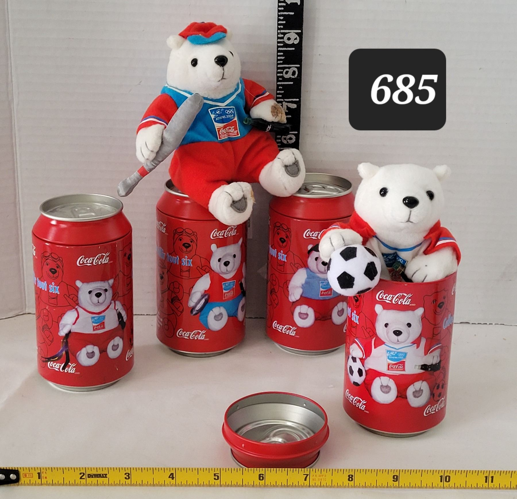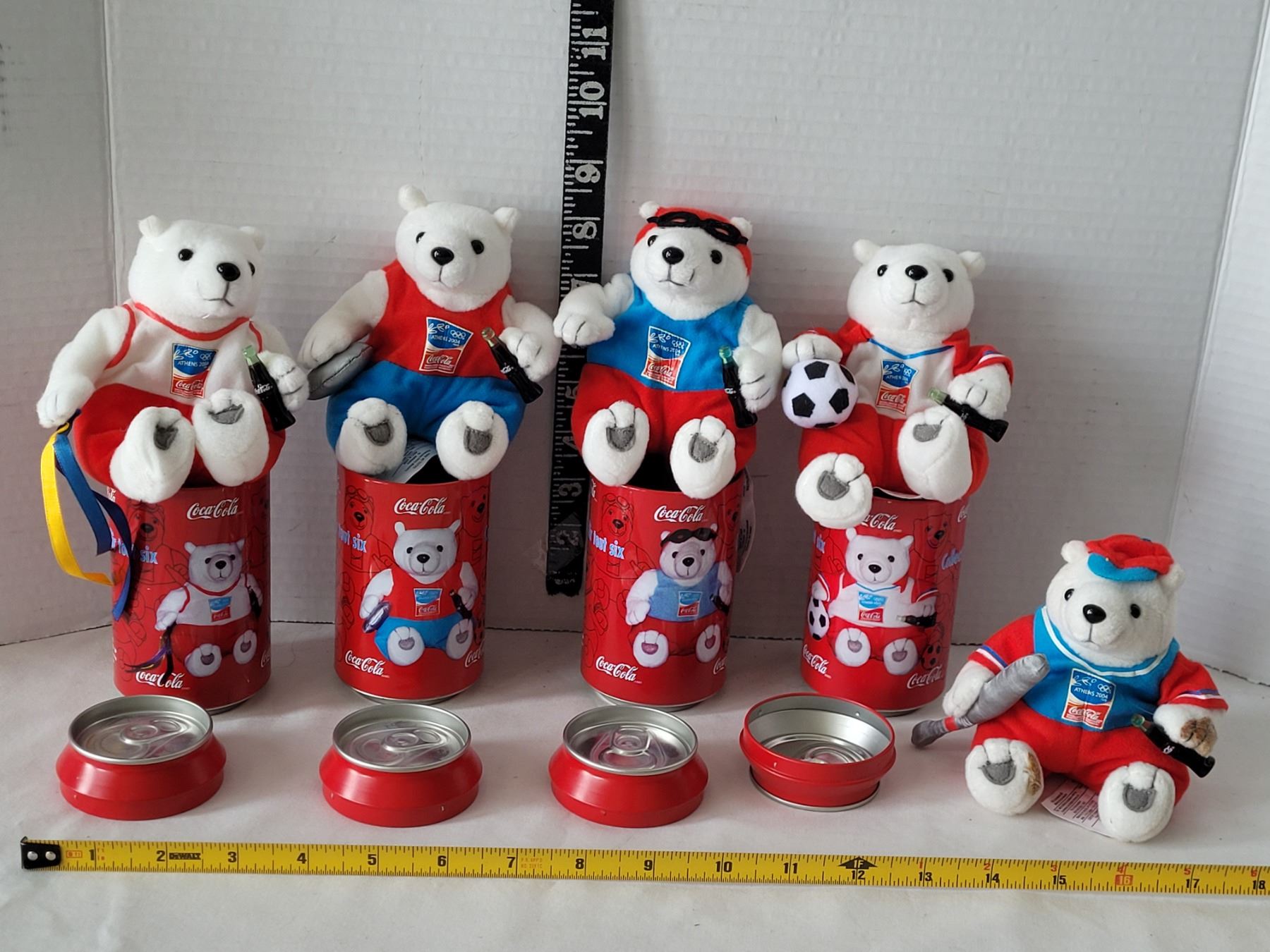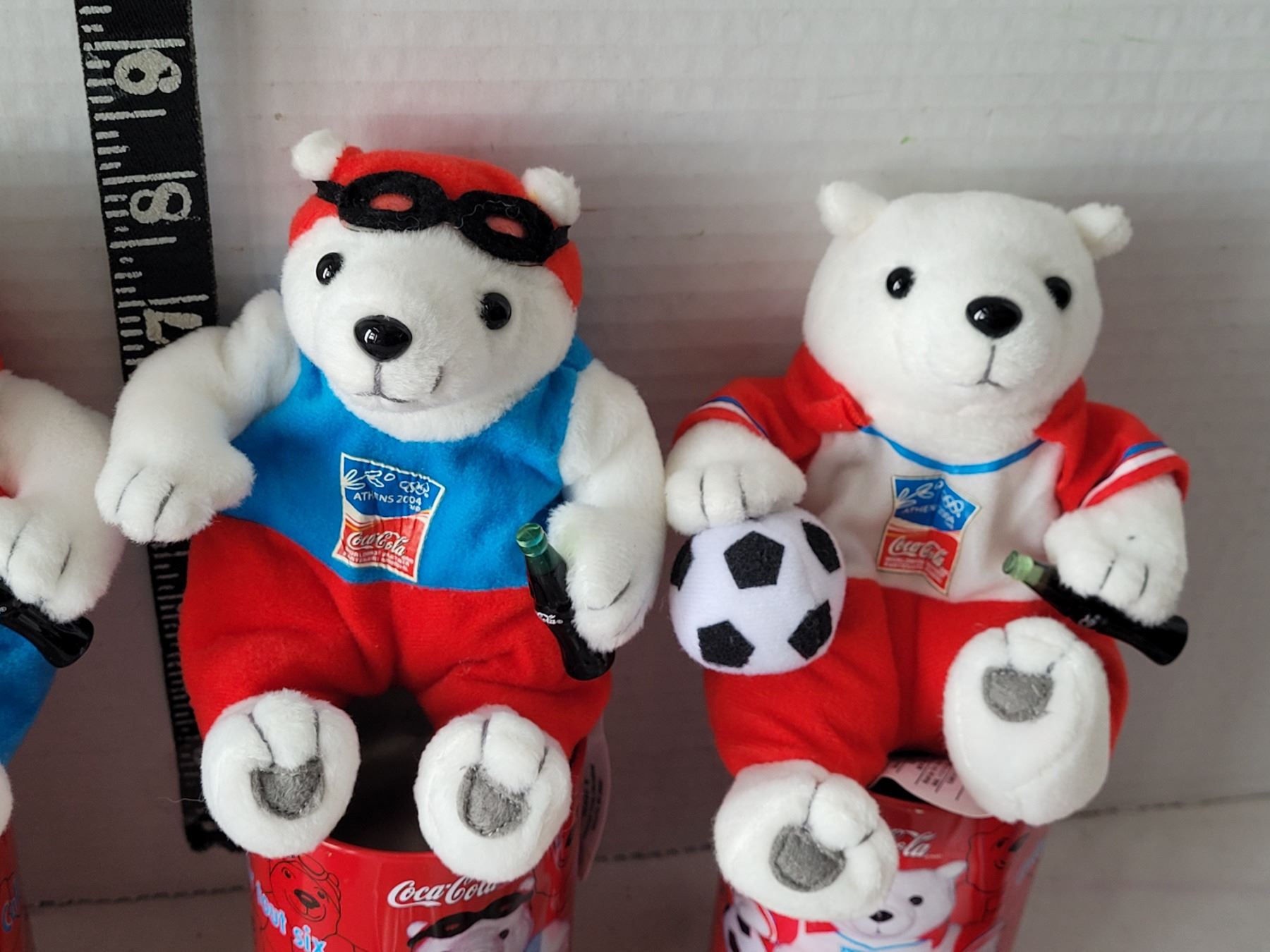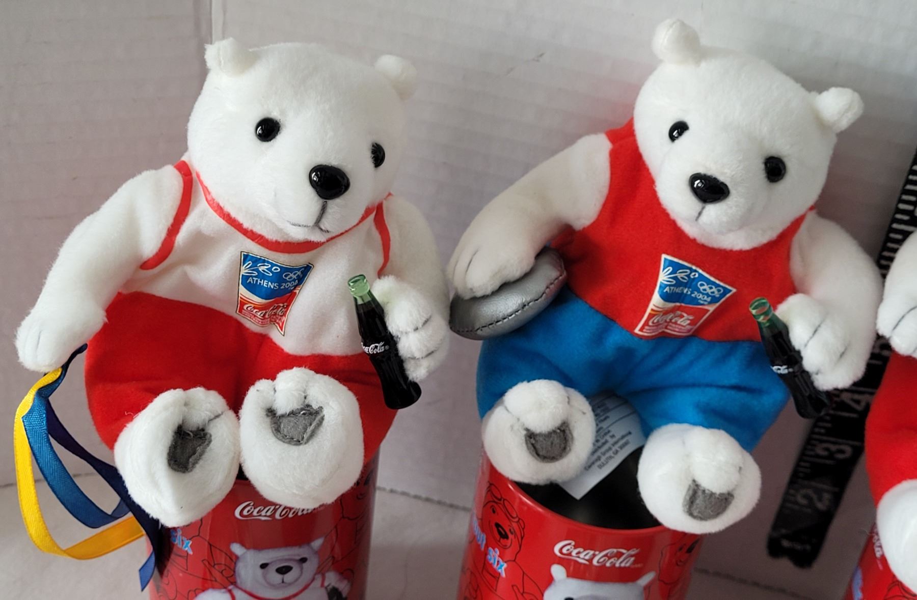 2004 Athens Olympic Coca-Cola Polar plush bears in a can. Each represents a different sport.