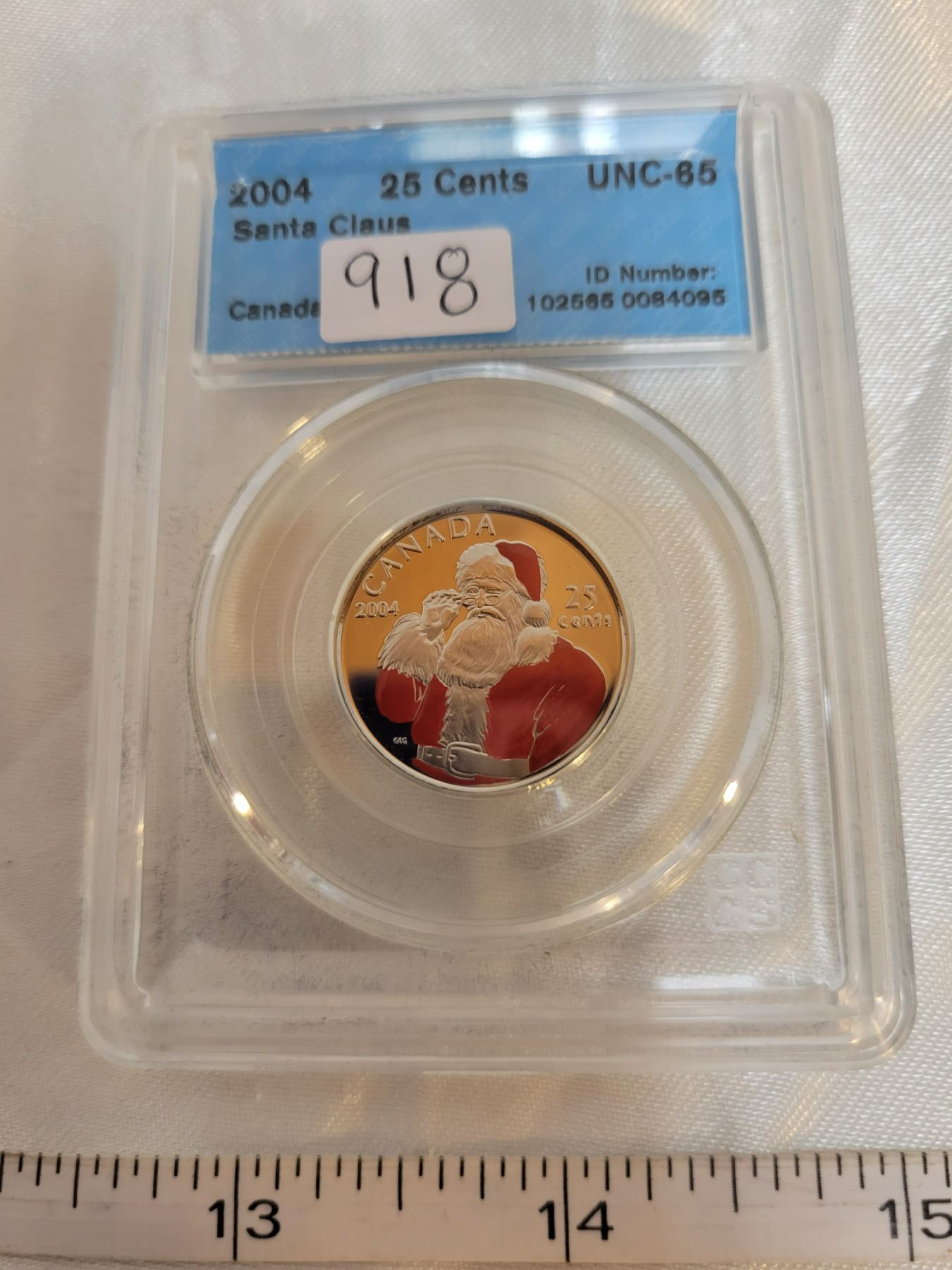 2004 Canada 25 cent 25¢ CCCS UNC-65 Santa Claus colourized