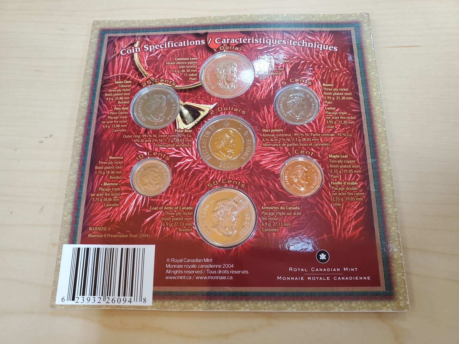 2004 Canada Happy Holidays 7-coin Gift Set, colored Santa 25¢