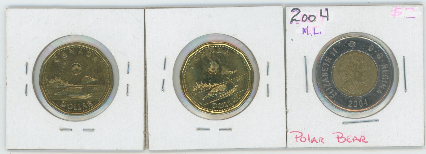 2004 Canadian 2 Dollar Coin & 2 X 2014 1 Dollar Canadian Coin