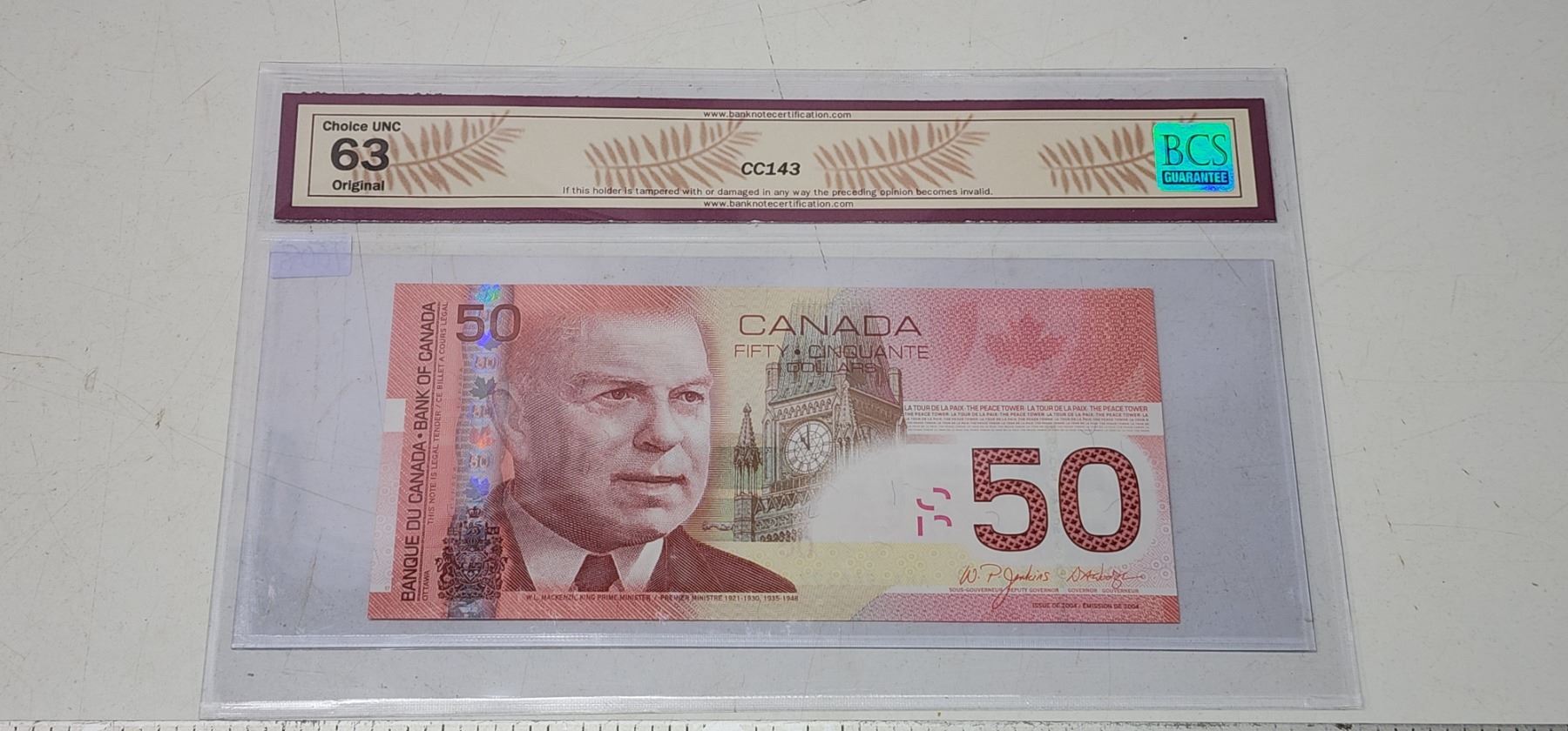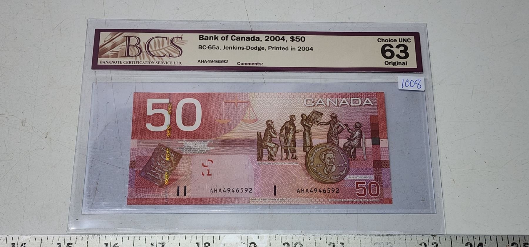 2004 Graded Canadian $50 bill - Jenkins/Dodge - AHA prefix - 4946592 - UNC 63