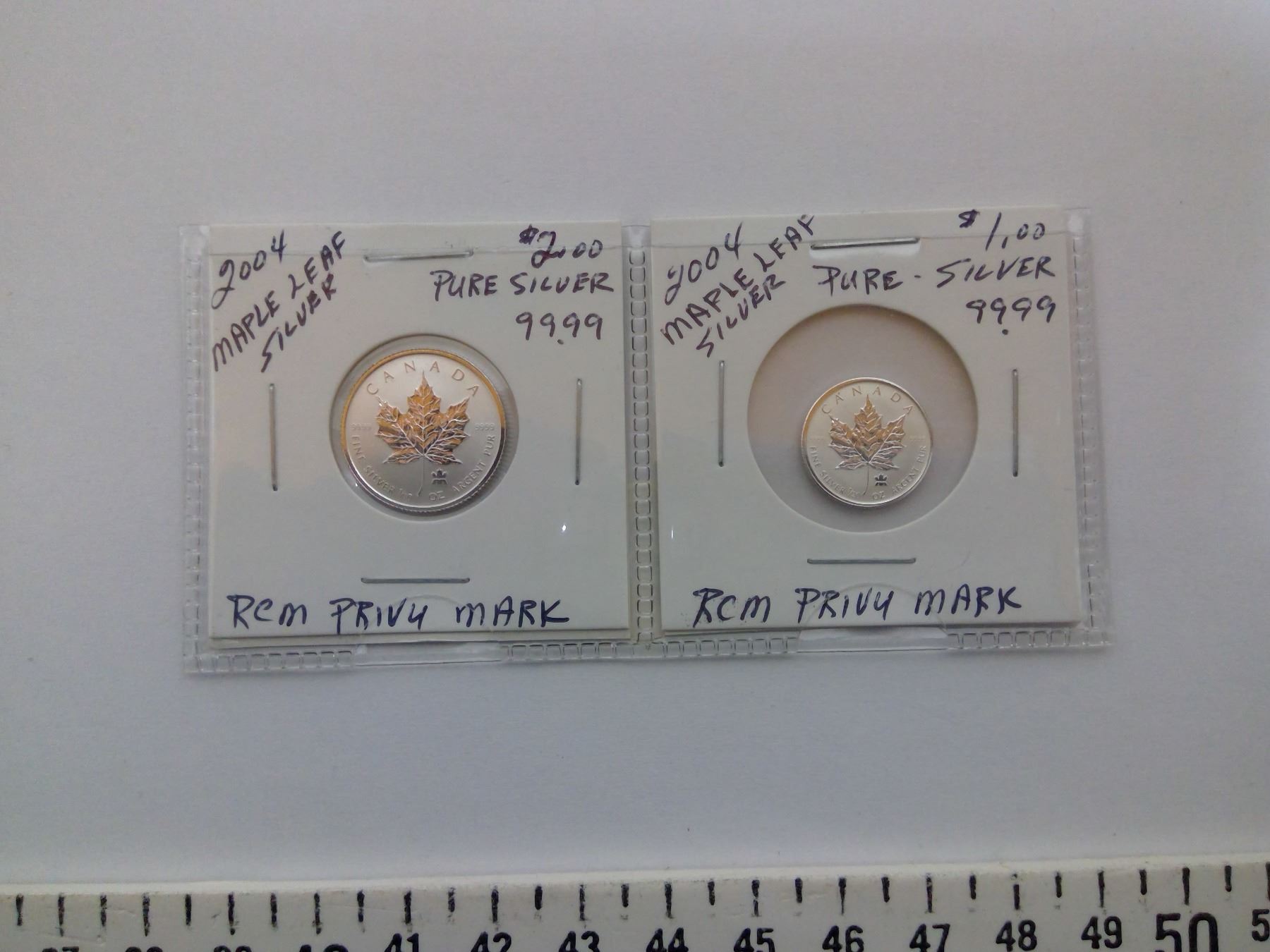2004 MAPLE LEAF SILVER 99.99 $1.00 & $2.00 COINS