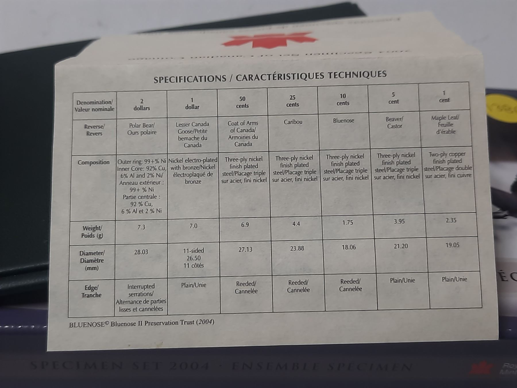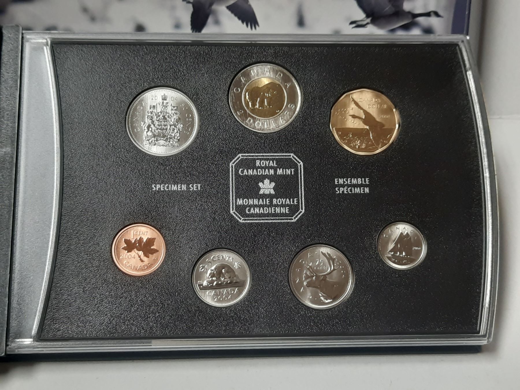 2004 Specimen Set. 7-coin set includes the Canada Goose Loonie only available in this set. Housed in its original RCM case along with Certificate of Authenticity.