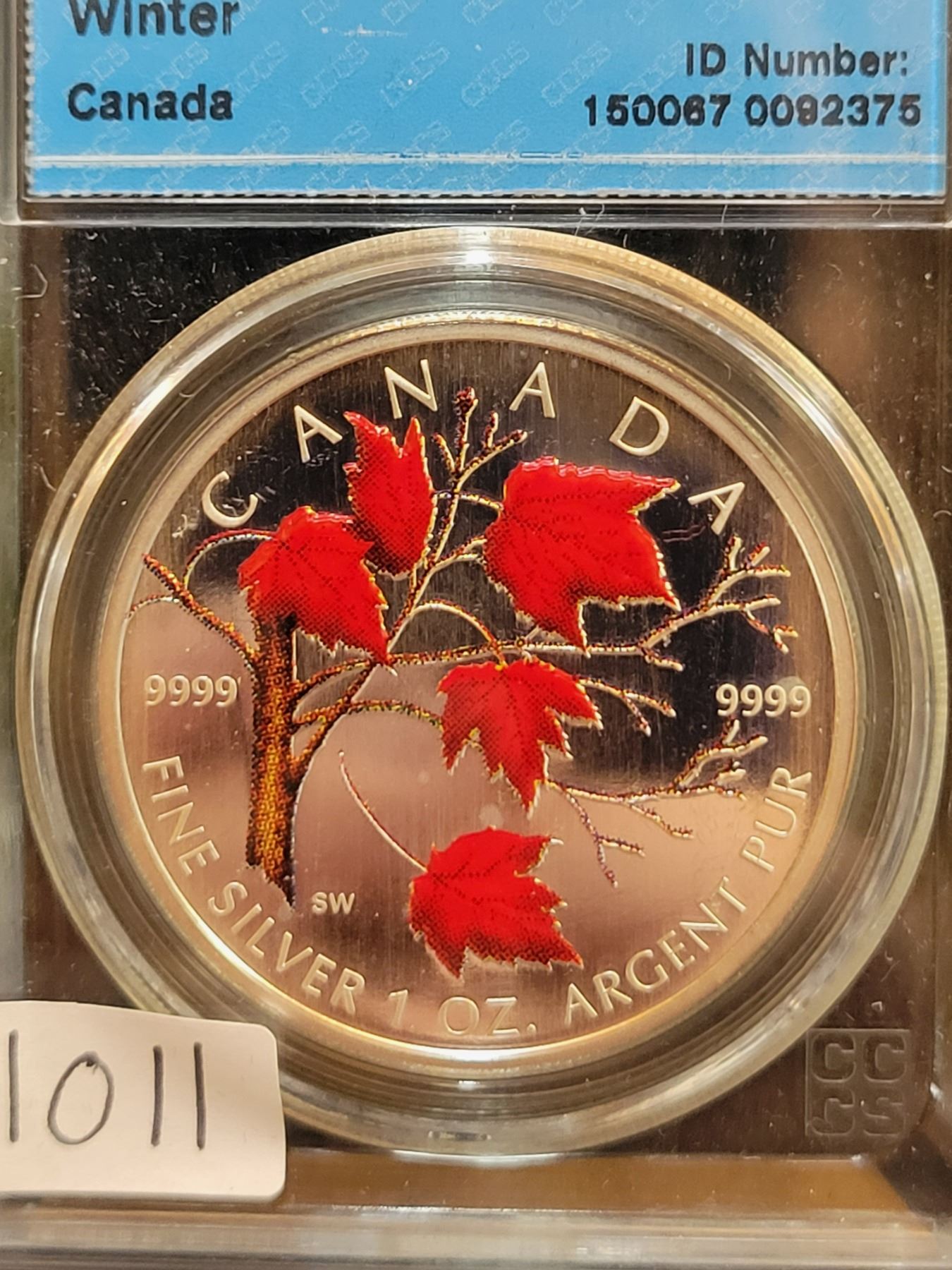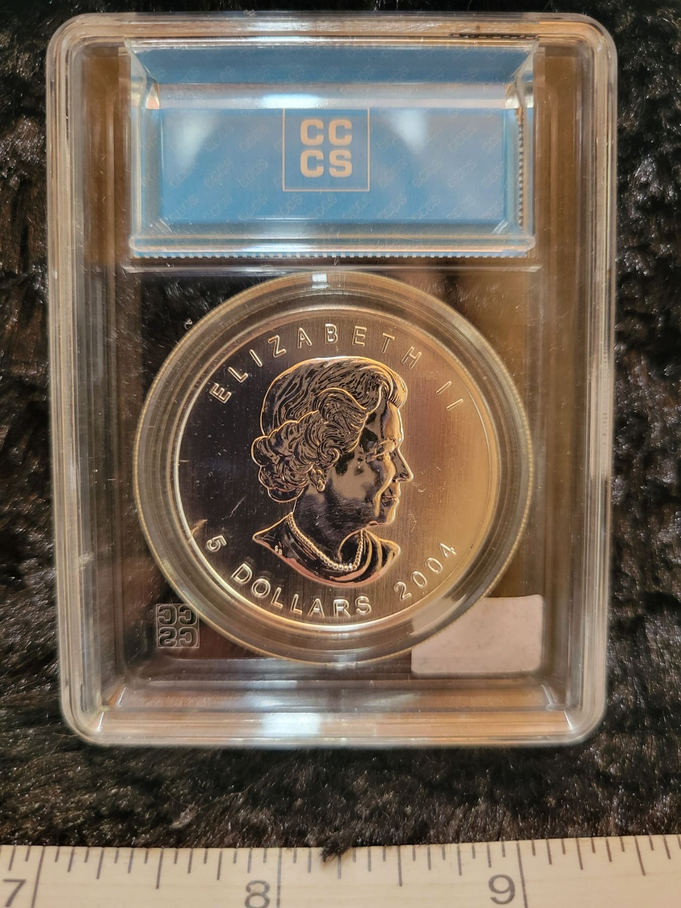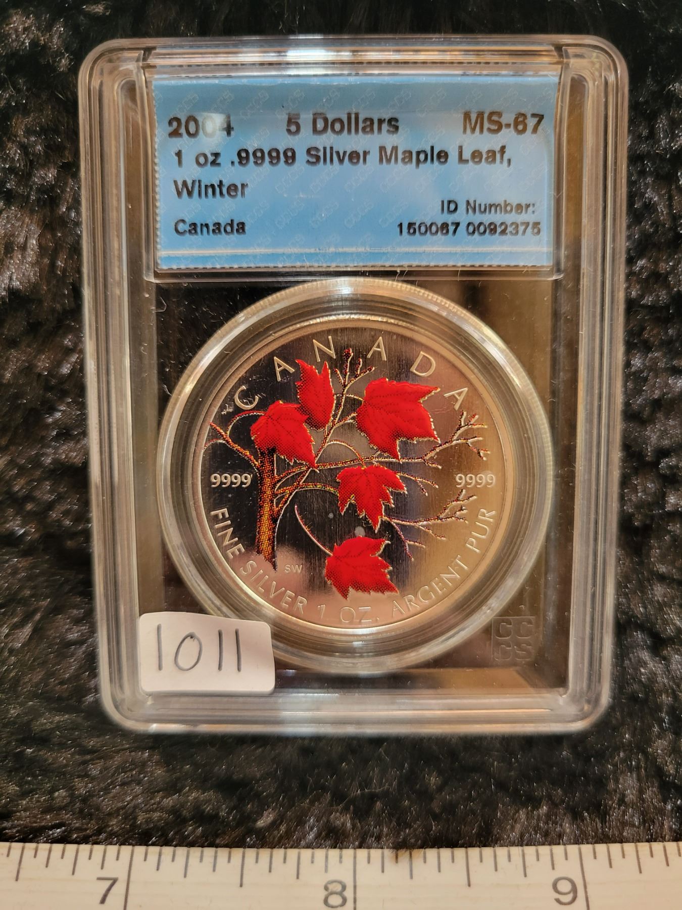 2004 five dollars $5.00 1 oz .9999 Silver Maple Leaf, Winter CCCS MS-67