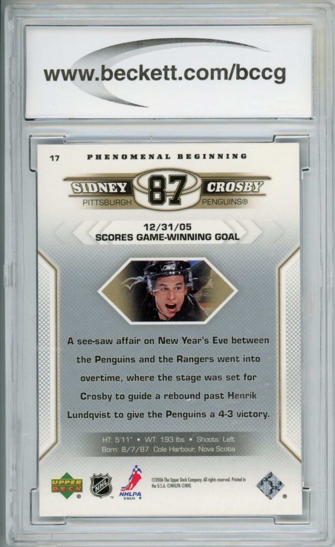 2005-06 Graded Sidney Crosby Gem 10 rookie card